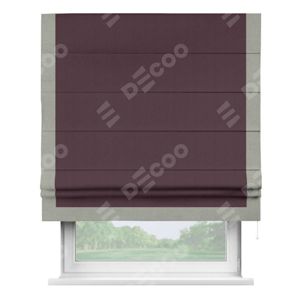 Римская штора производителя «Cortin», используется для проёма, пошита из ткани блэкаут однотонный сиреневый, артикул ткани 29333−2. Отделка шторы кантом «Виктория», ткань для канта используется из блэкаута однотонного разной расцветки на выбор. Имеет универсальный механизм и подходит для монтажа: на потолок, на стену и в нишу.