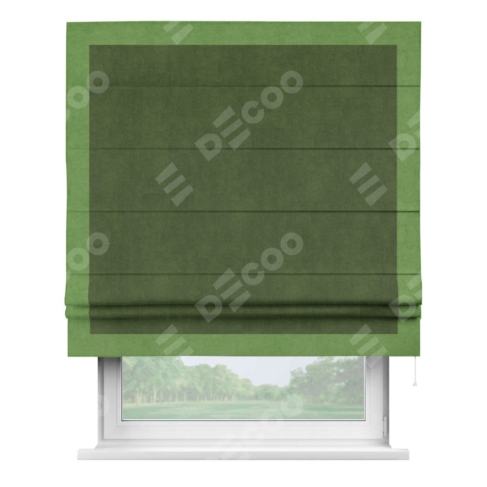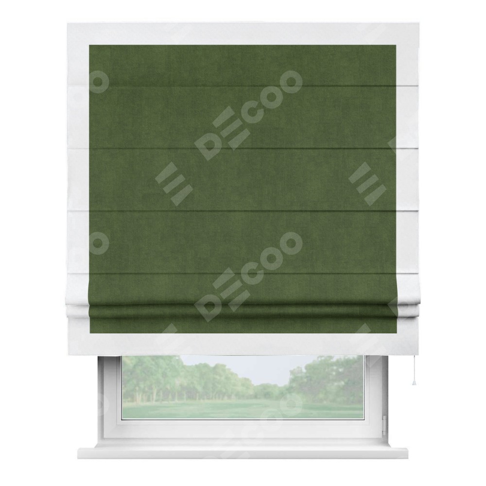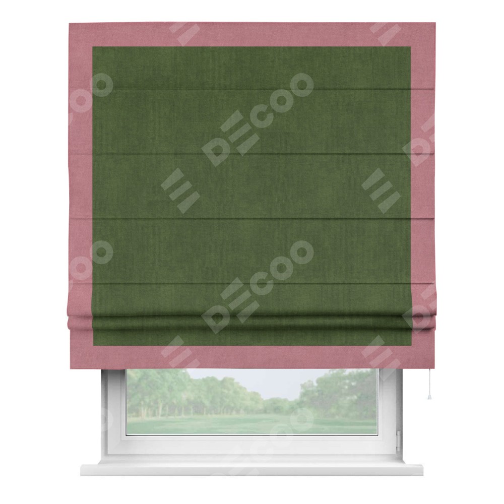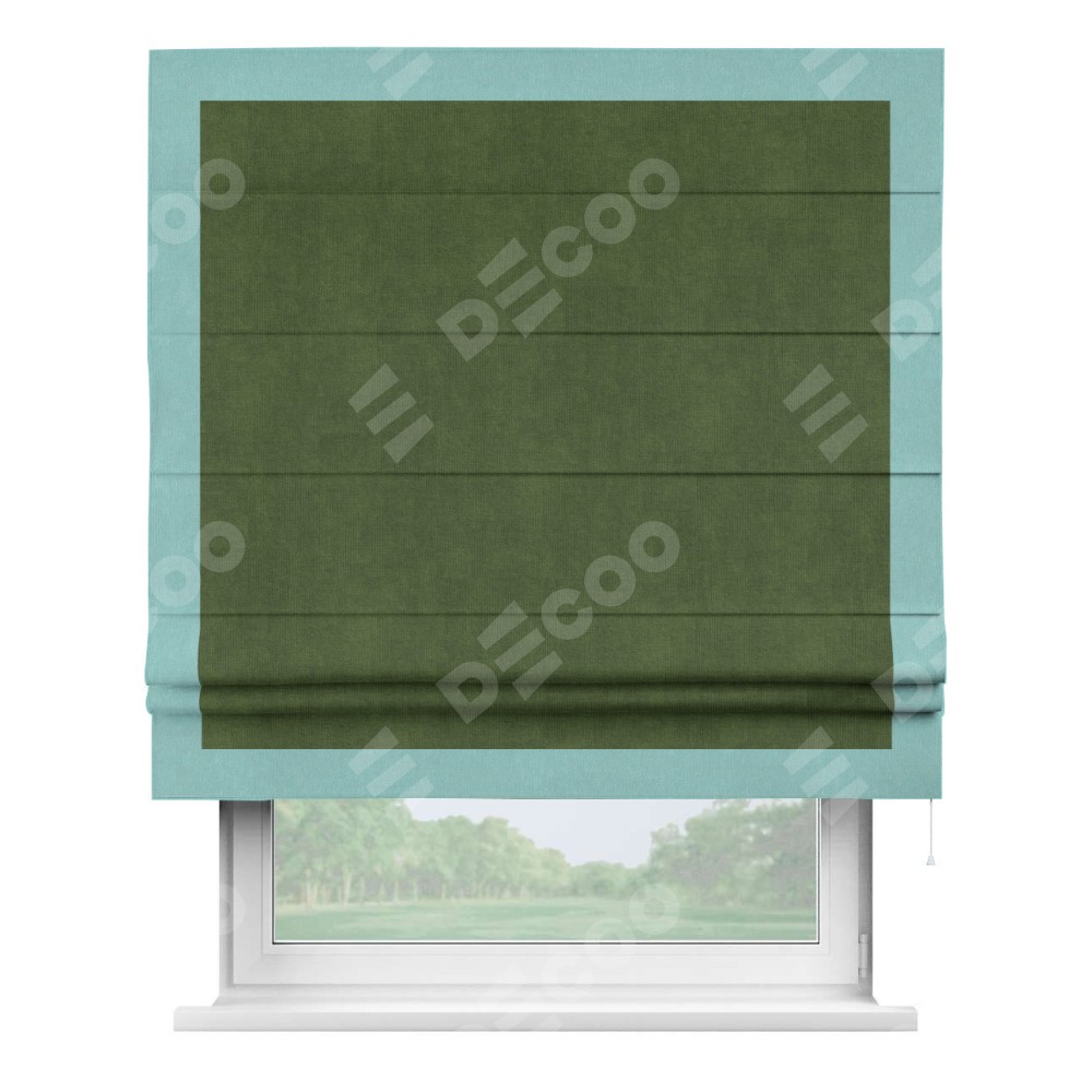 Римская штора «Кортин» с кантом Чесс, для проема, ткань вельвет тёмно-салатовый