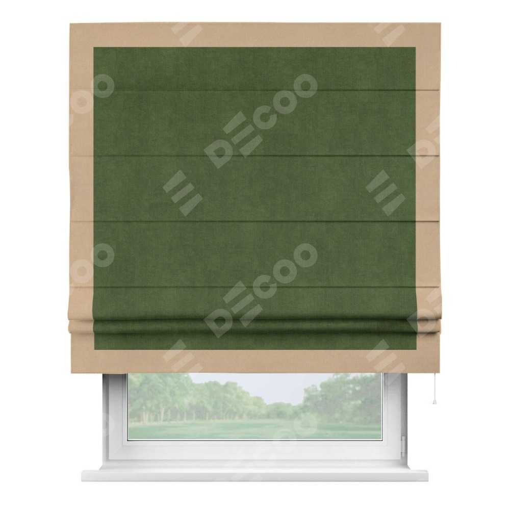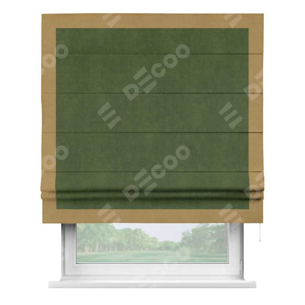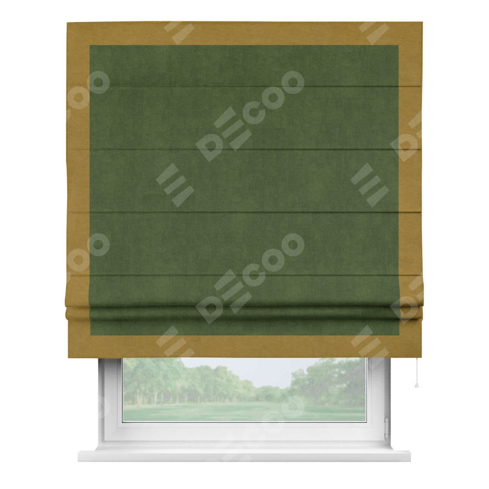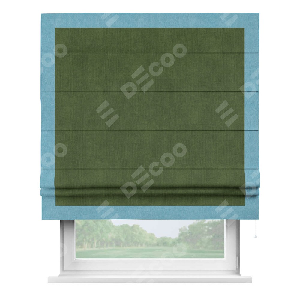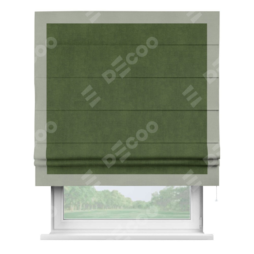Римская штора «Кортин» с кантом Чесс, для проема, ткань вельвет тёмно-салатовый