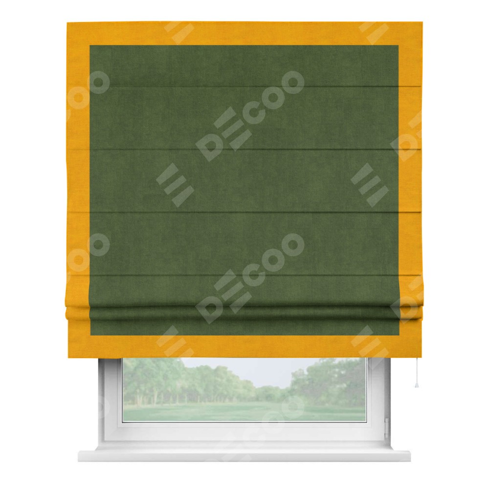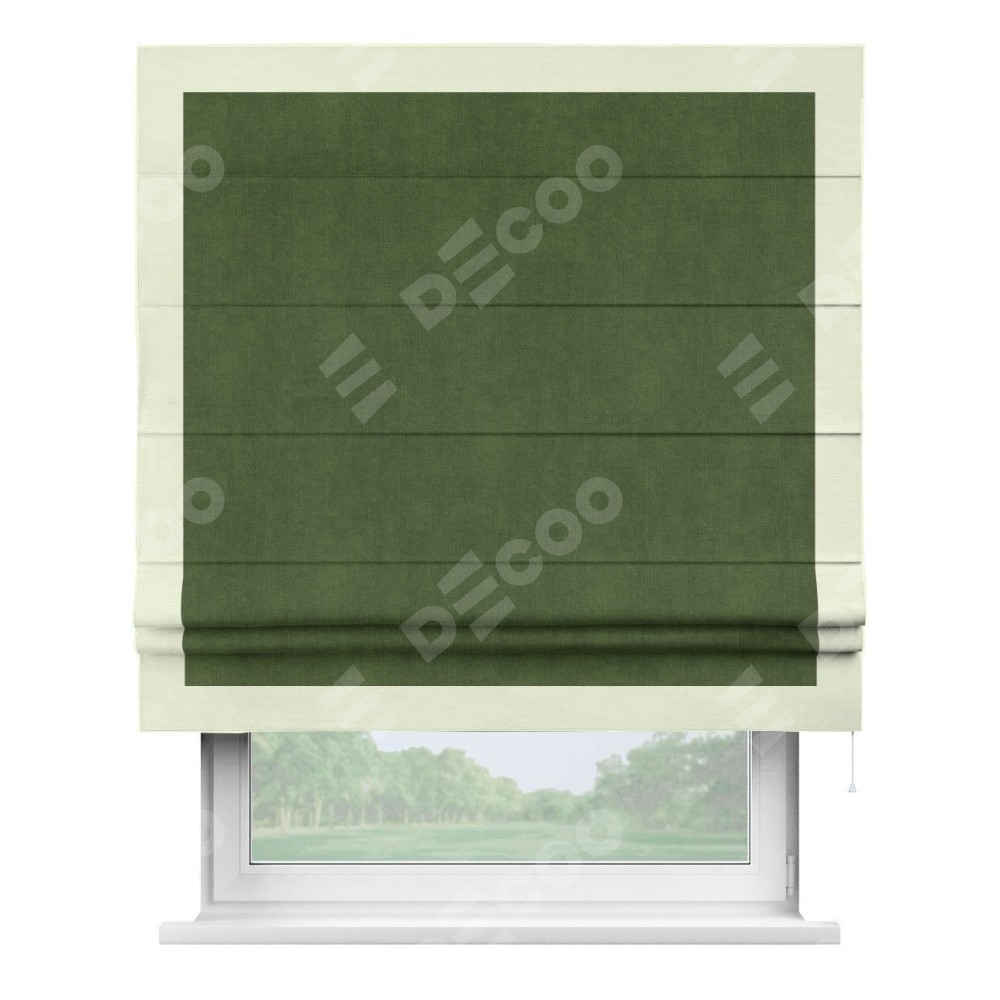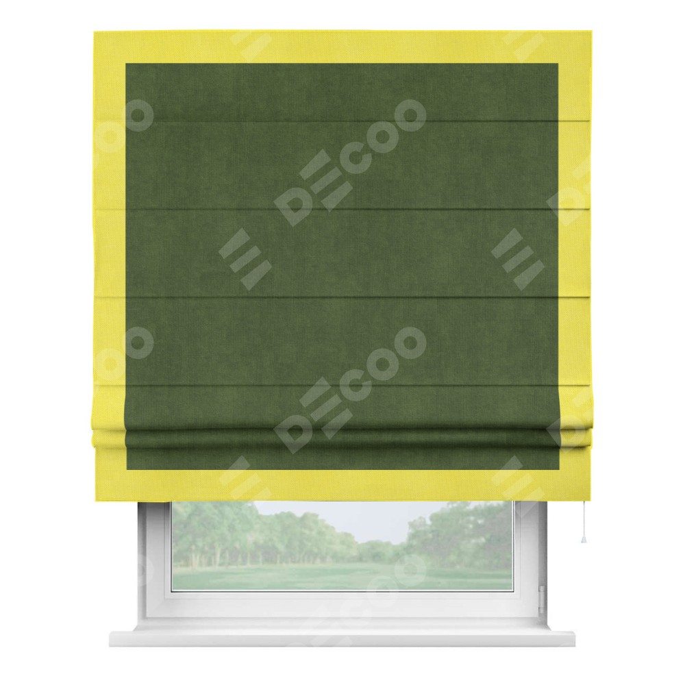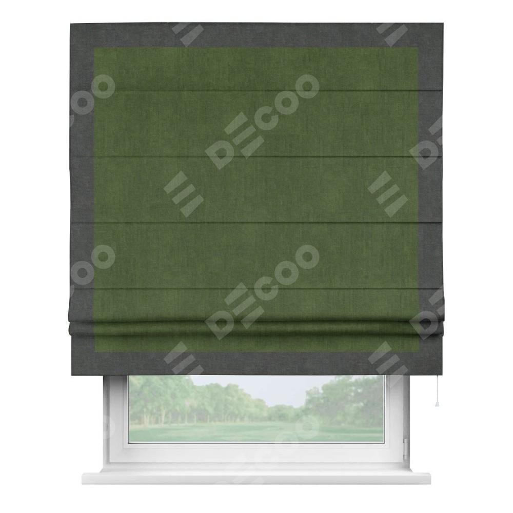 Римская штора «Кортин» с кантом Чесс, для проема, ткань вельвет тёмно-салатовый