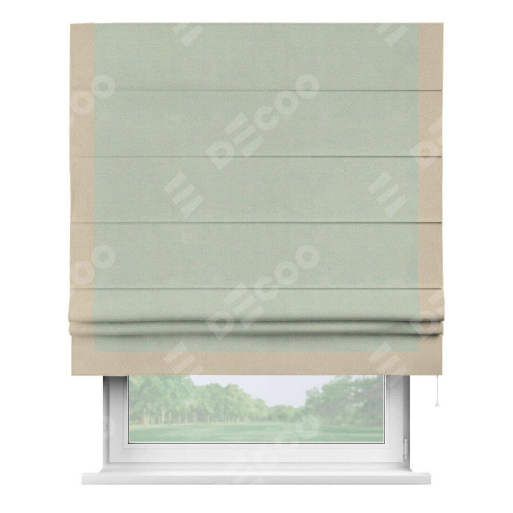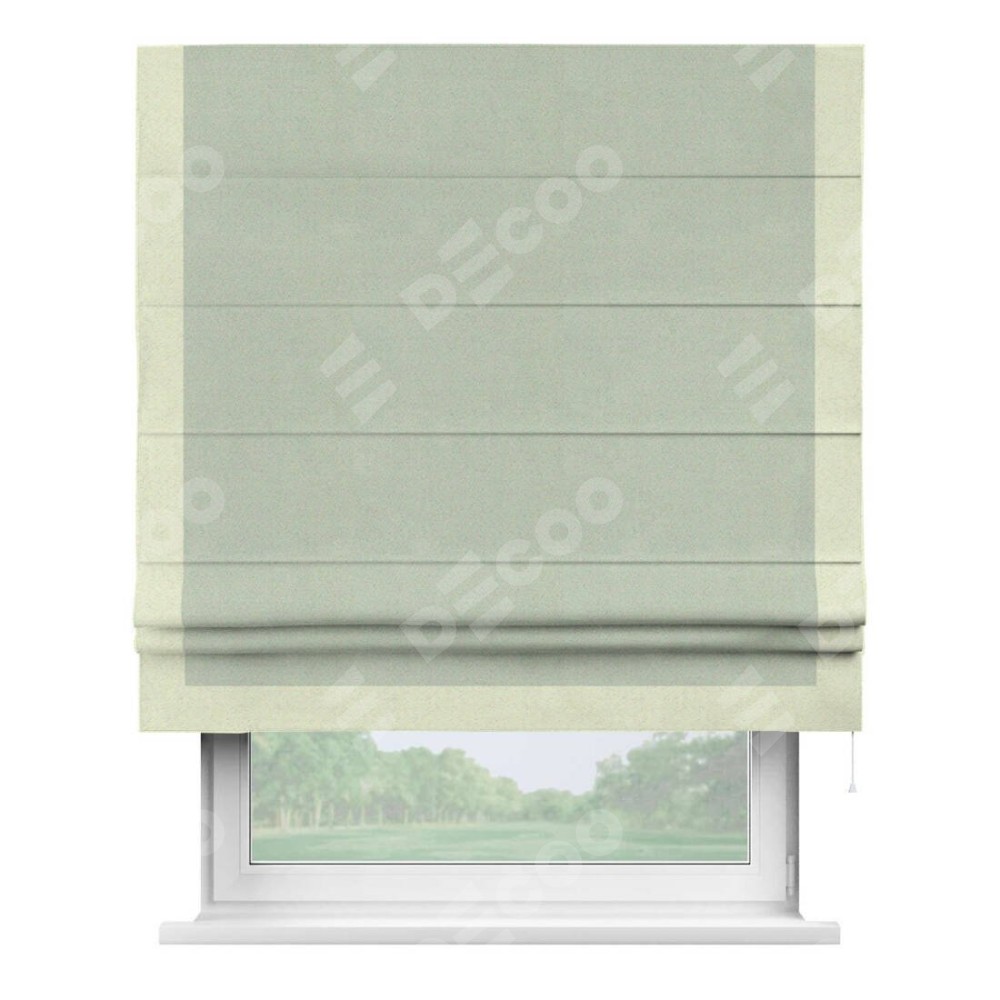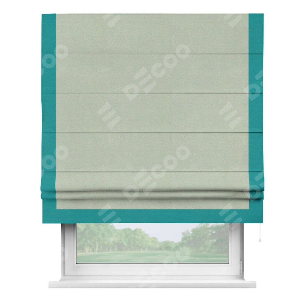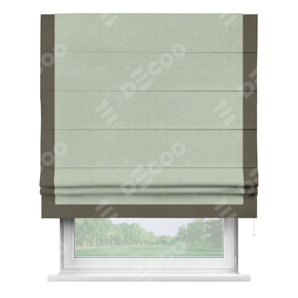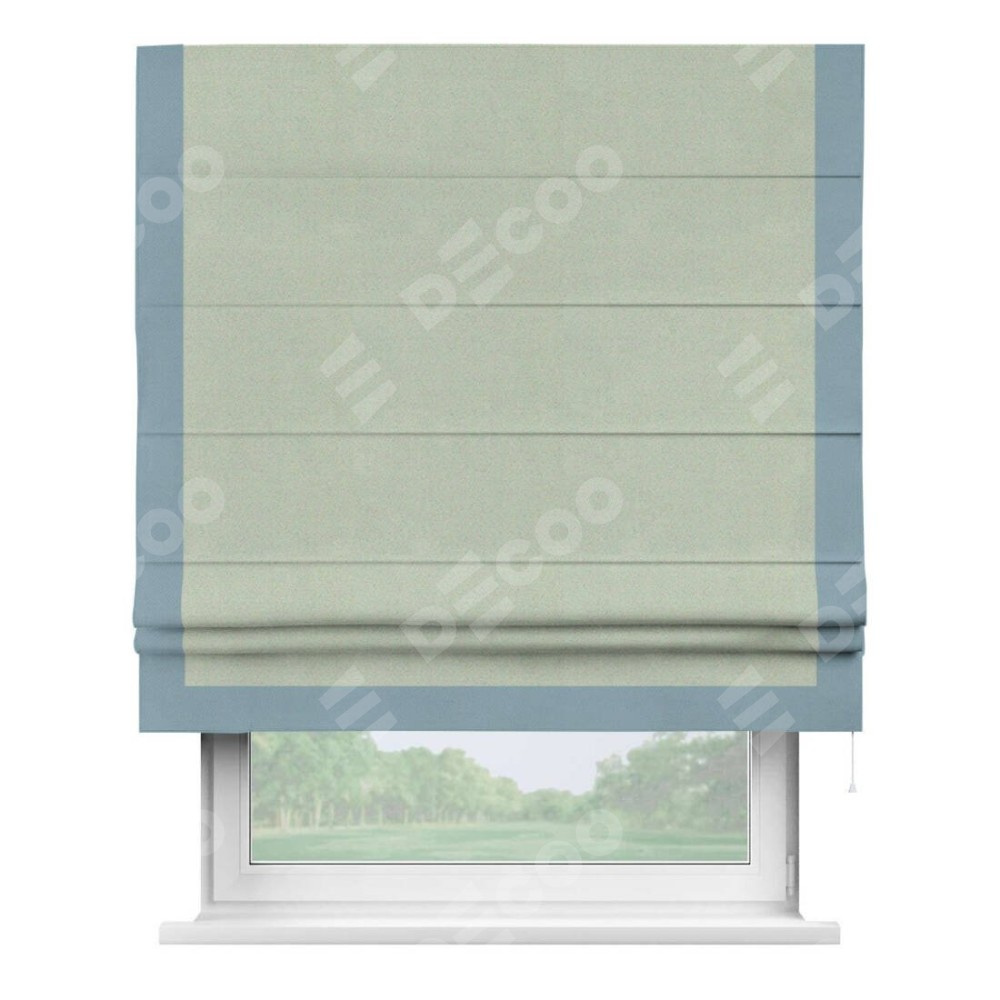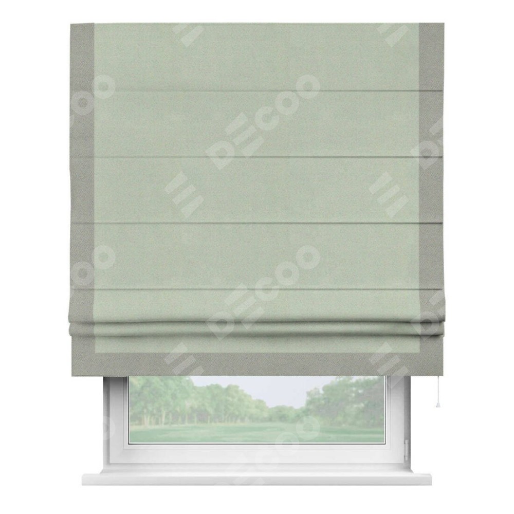 Римская штора производителя «Cortin», используется для проёма, пошита из ткани блэкаут однотонный светло-серый, артикул ткани 29332−2. Отделка шторы кантом «Виктория», ткань для канта используется из блэкаута однотонного разной расцветки на выбор. Имеет универсальный механизм и подходит для монтажа: на потолок, на стену и в нишу.