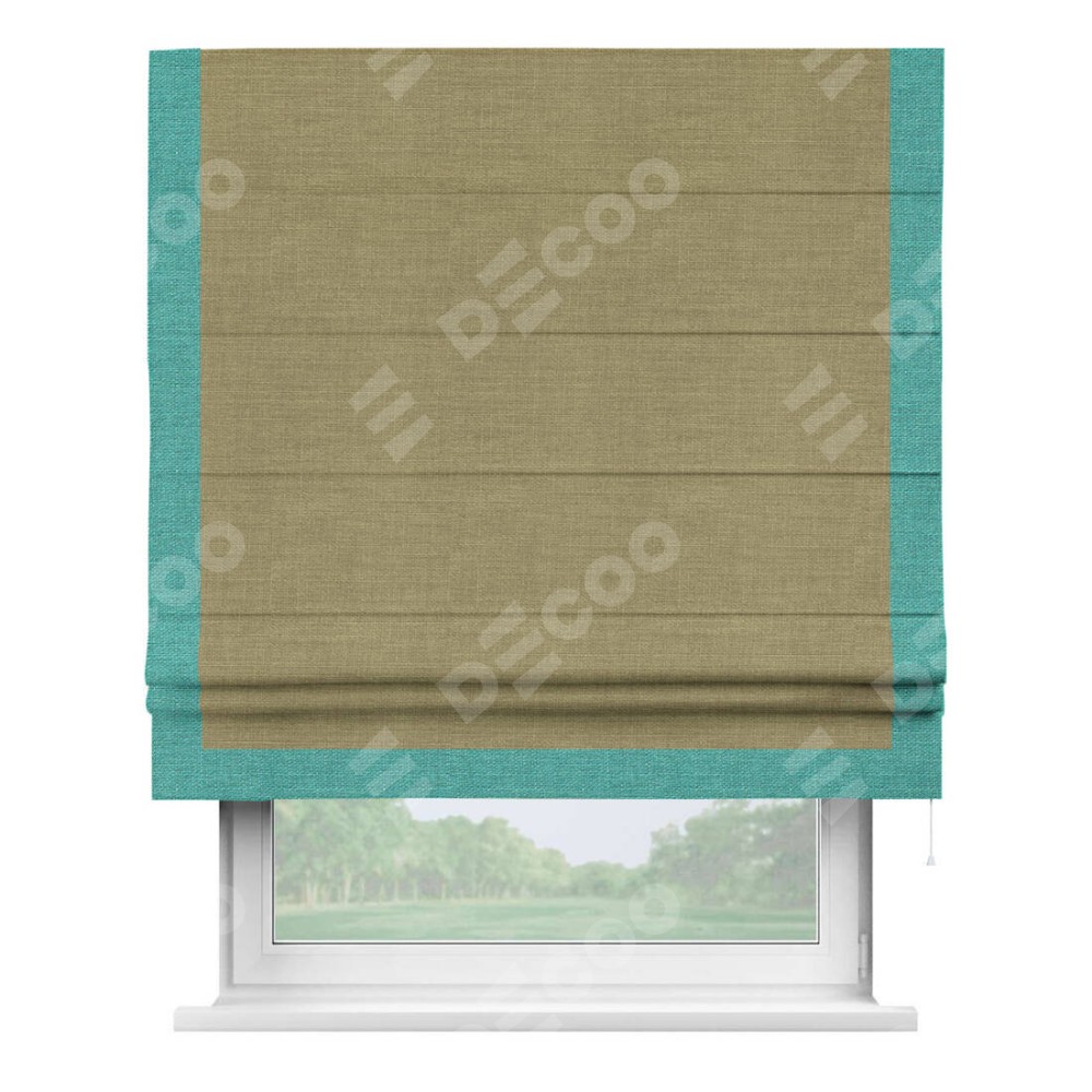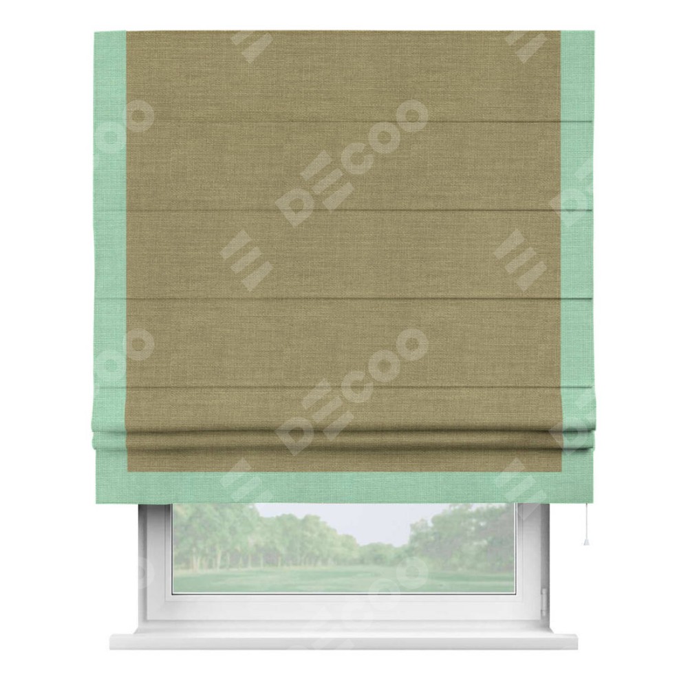 Римская штора производителя «Cortin», используется для проёма, пошита из ткани лён коричневый, артикул 7443. Отделка шторы кантом «Виктория», ткань для канта используется из льна разной расцветки на выбор. Имеет универсальный механизм и подходит для монтажа: на потолок, на стену и в нишу.