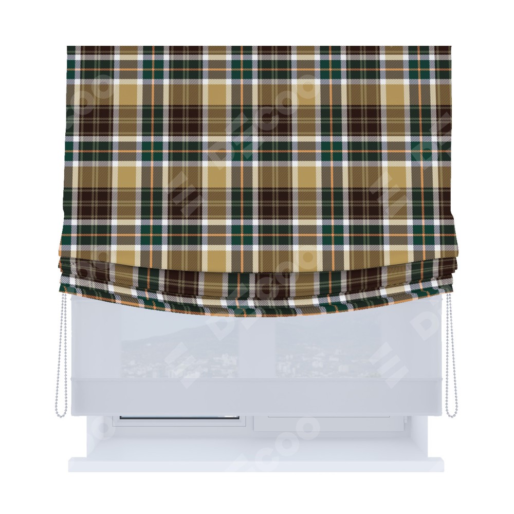 Римская штора «Кортин», день-ночь с мягкими складками, «Бежево-зелёная клетка»