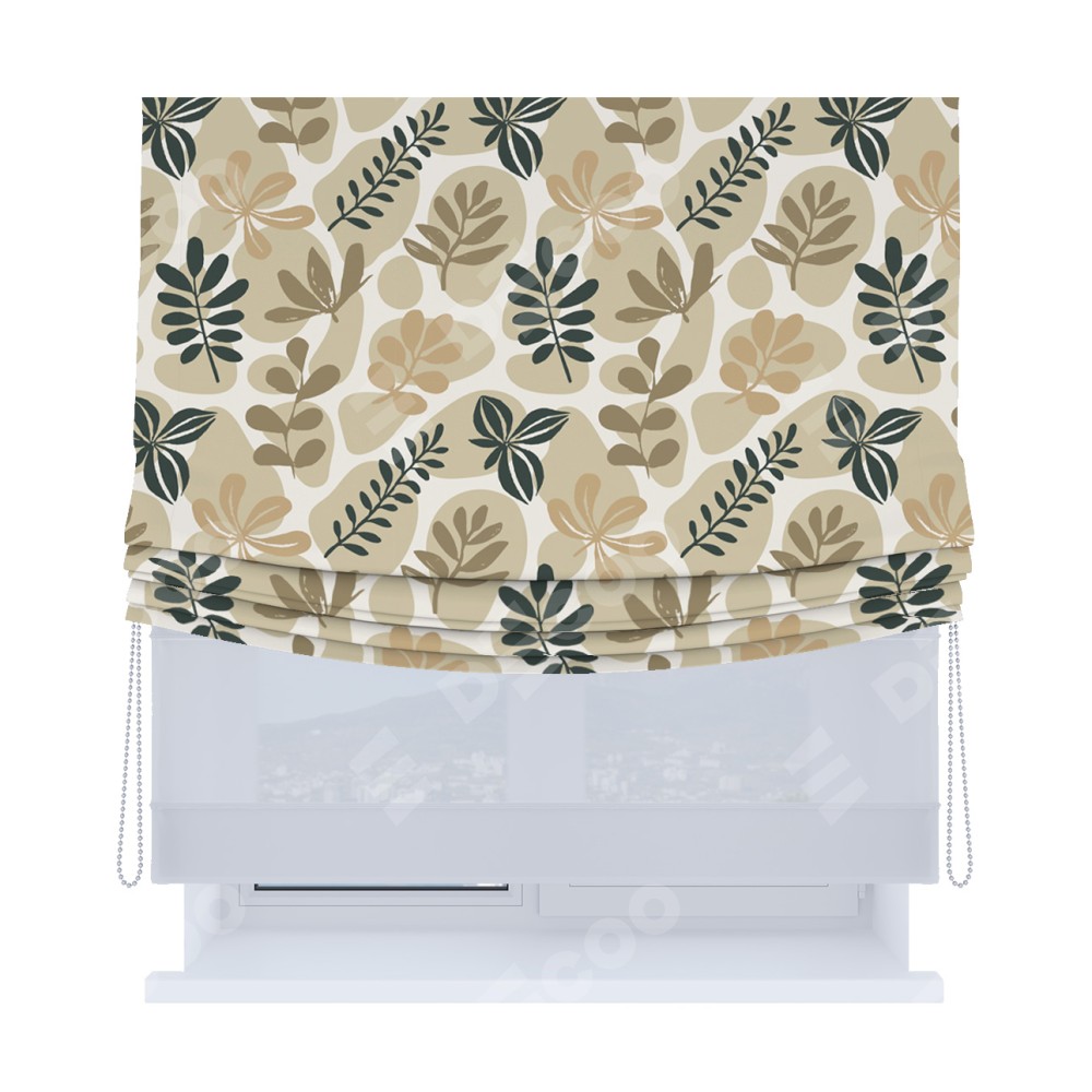 Римская штора «Кортин», день-ночь с мягкими складками, «Бежевый сад»