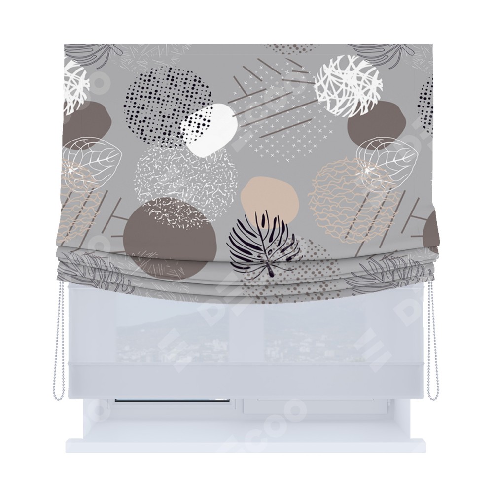 Римская штора день-ночь производителя «Cortin», используется для проёма, пошита из двух полотен, с лицевой блэкаут с нанесением сублимационной печати «Ботаника абстракция», вторая ткань тюль (по стандарту комплектуется тюль белого цвета артикул V-01). Имеет универсальный механизм и подходит для монтажа: на потолок, на стену и в нишу. Удобное управление каждой шторой отдельно.
