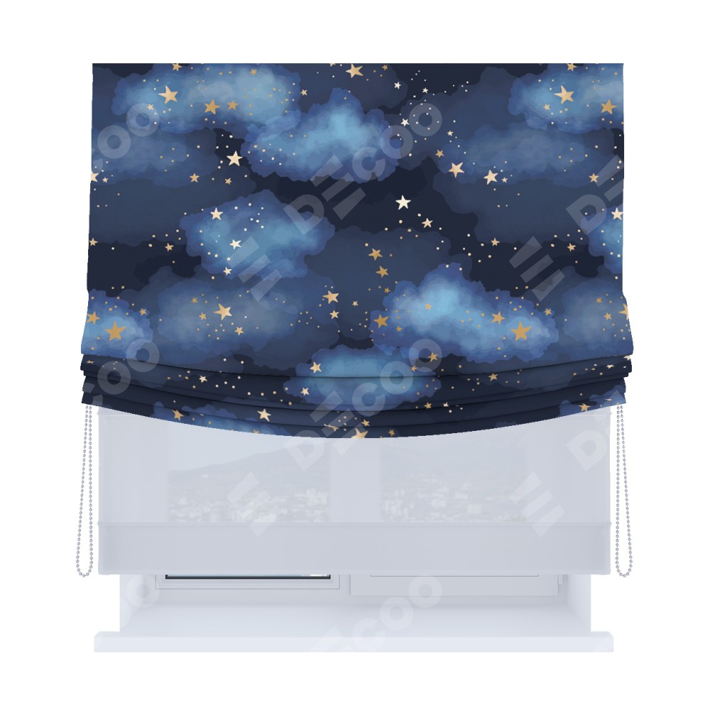 Римская штора «Кортин», день-ночь с мягкими складками, «Золотые звёзды»