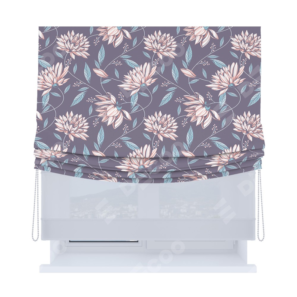 Римская штора день-ночь производителя «Cortin», используется для проёма, пошита из двух полотен, с лицевой блэкаут с нанесением сублимационной печати «Романтический вечер», вторая ткань тюль (по стандарту комплектуется тюль белого цвета артикул V-01). Имеет универсальный механизм и подходит для монтажа: на потолок, на стену и в нишу. Удобное управление каждой шторой отдельно.