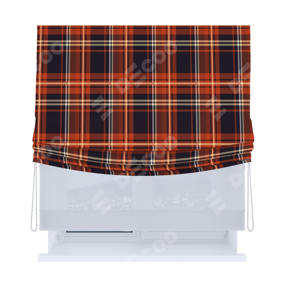 Римская штора «Кортин», день-ночь с мягкими складками, «Сине-оранжевая клетка»