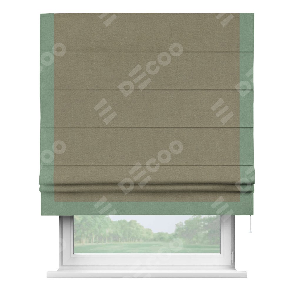Римская штора производителя «Cortin», используется для проёма, пошита из ткани лён блэкаут бежевый, артикул 69435. Отделка шторы кантом «Виктория», ткань для канта используется из льна разной расцветки на выбор. Имеет универсальный механизм и подходит для монтажа: на потолок, на стену и в нишу.