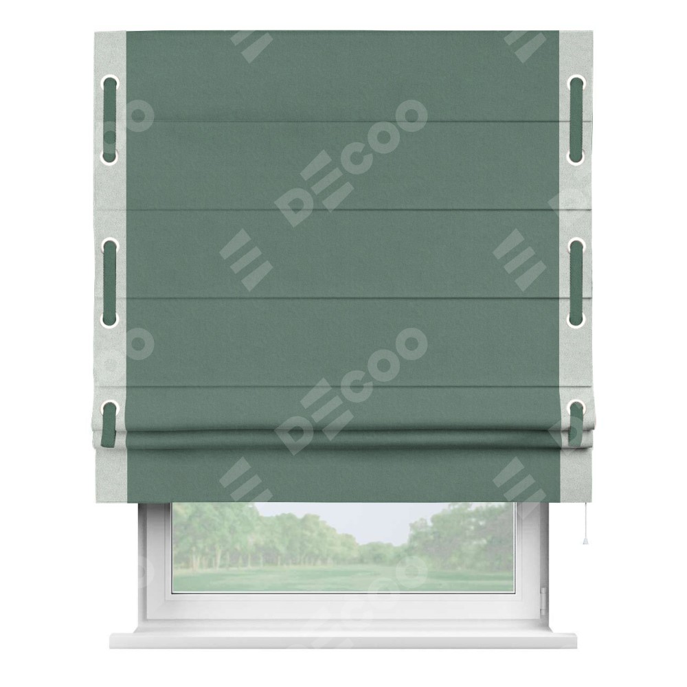 Римская штора «Кортин» с кантом Стрим Дуо (люверсы с пояском), для проема, лён блэкаут бирюзовый