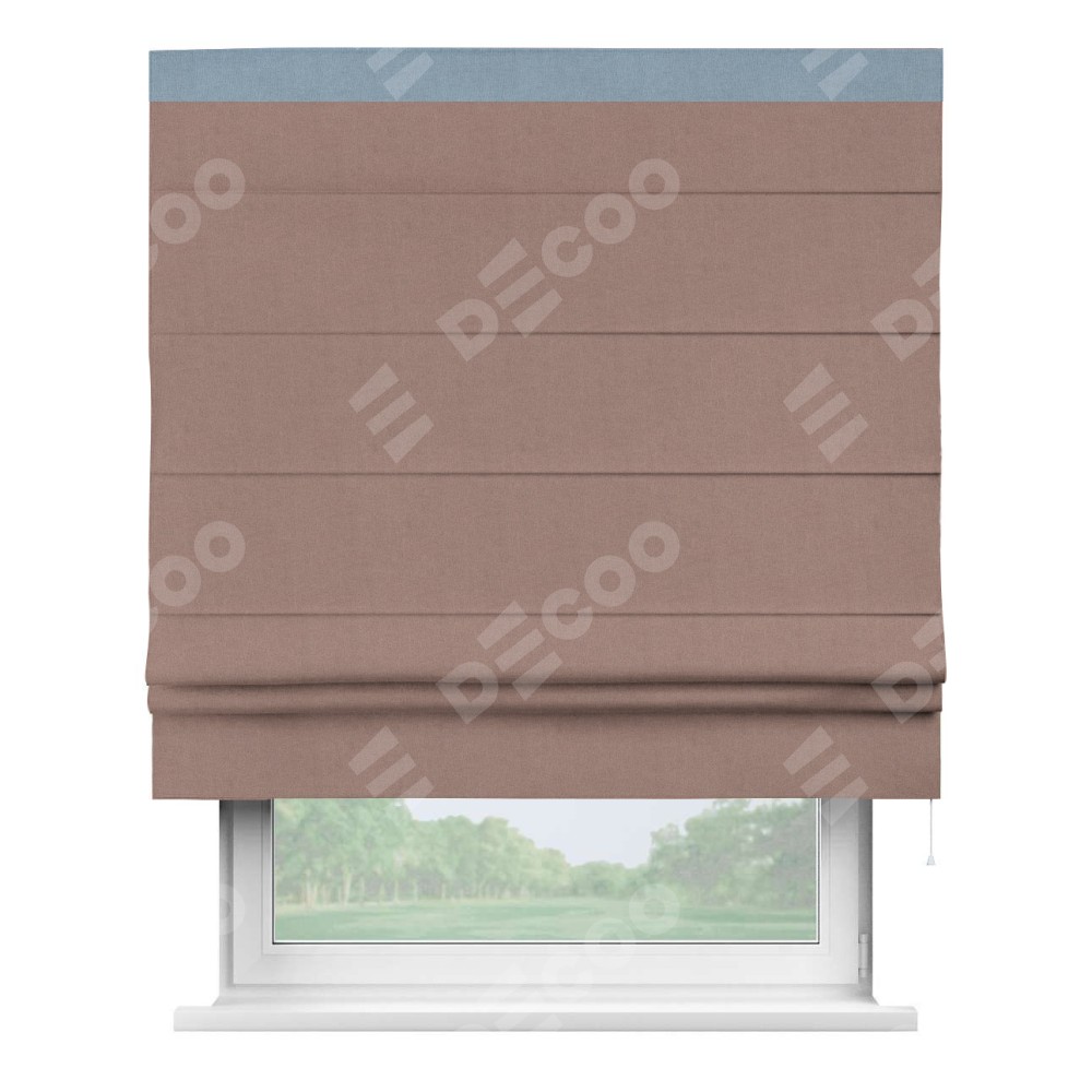 Римская штора производителя «Cortin», используется для проёма, пошита из ткани лён блэкаут розовый, артикул 69575. Отделка шторы кантом «Кинг», ткань для канта используется из льна разной расцветки на выбор. Имеет универсальный механизм и подходит для монтажа: на потолок, на стену и в нишу.