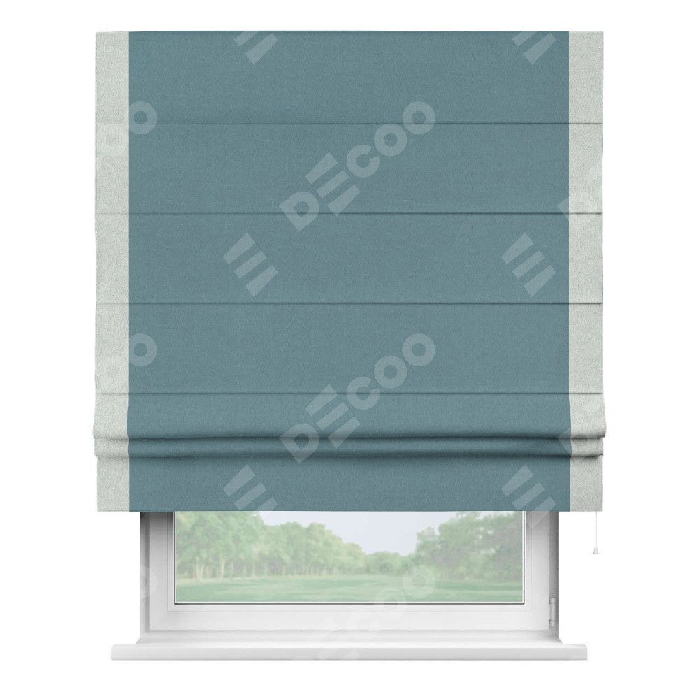 Римская штора «Кортин» с кантом Стрим Дуо, для проема, лён блэкаут синий