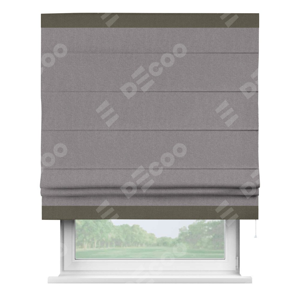 Римская штора производителя «Cortin», используется для проёма, пошита из ткани лён блэкаут сиреневый, артикул 69576. Отделка шторы кантом «Горизонт», ткань для канта используется из льна разной расцветки на выбор. Имеет универсальный механизм и подходит для монтажа: на потолок, на стену и в нишу.