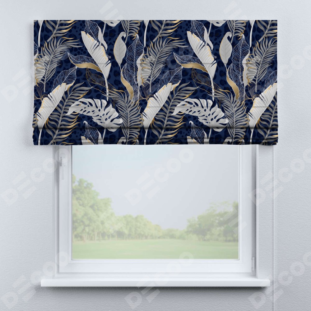 Римская штора «Кортин» для проема «Сине-золотые джунгли»
