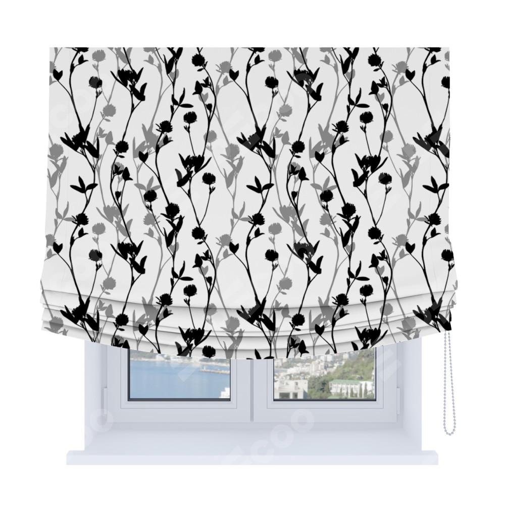 Римская штора Soft производителя «Cortin», используется для проёма, пошита из ткани блэкаут с нанесением сублимационной печати «Цветочный силуэт». Имеет универсальный механизм и подходит для монтажа: на потолок, на стену и в нишу. В отличие от стандартных римских штор, римская штора Soft не имеет горизонтальных вставок и нижнего отвеса. Это позволяет ткани произвольно драпироваться в свободные мягкие складки.