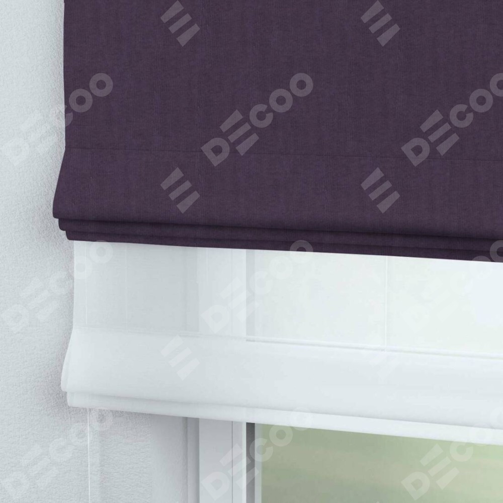 Римская штора день-ночь производителя «Cortin», используется для проёма, пошита из двух полотен, с лицевой стороны канвас баклажановый артикул v-111, вторая ткань тюль (по стандарту комплектуется тюль белого цвета артикул V-01). Имеет универсальный механизм и подходит для монтажа: на потолок, на стену и в нишу.