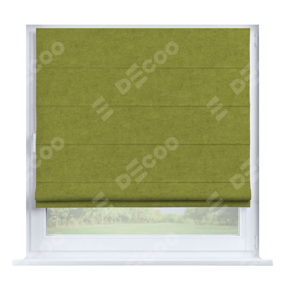 Римская штора производителя «Cortin», устанавливается на створку окна, пошита из ткани канвас зелёное яблоко, артикул v-370. Штора шьётся по индивидуальным размерам, для данного типа римской шторы возможная ширина от 35 до 150 см., высота до 250 см.
