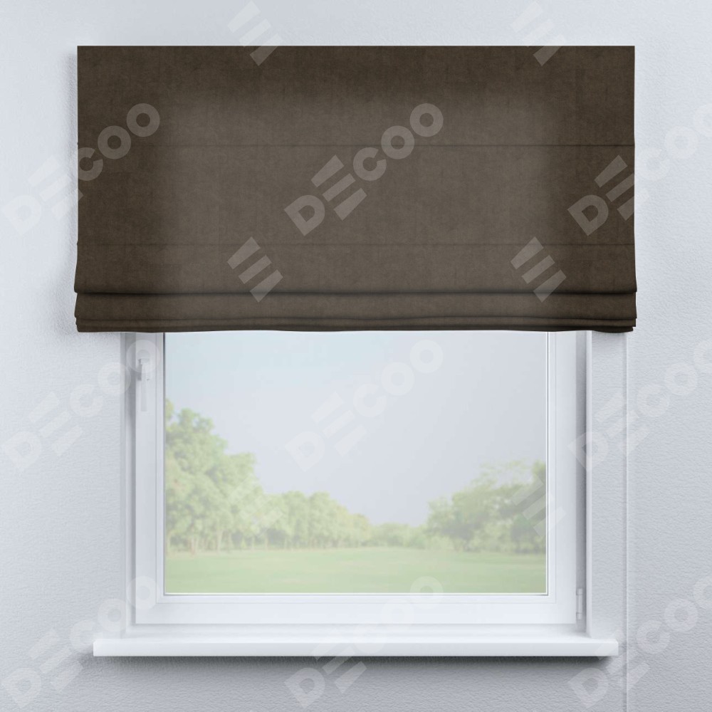 Римская штора производителя «Cortin», используется для проёма, пошита из ткани канвас коричневый, артикул ткани v-29. Имеет универсальный механизм и подходит для монтажа: на потолок, на стену и в нишу.