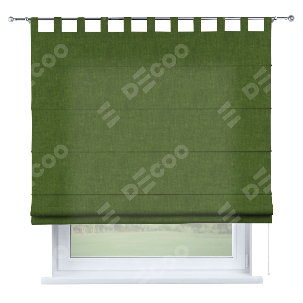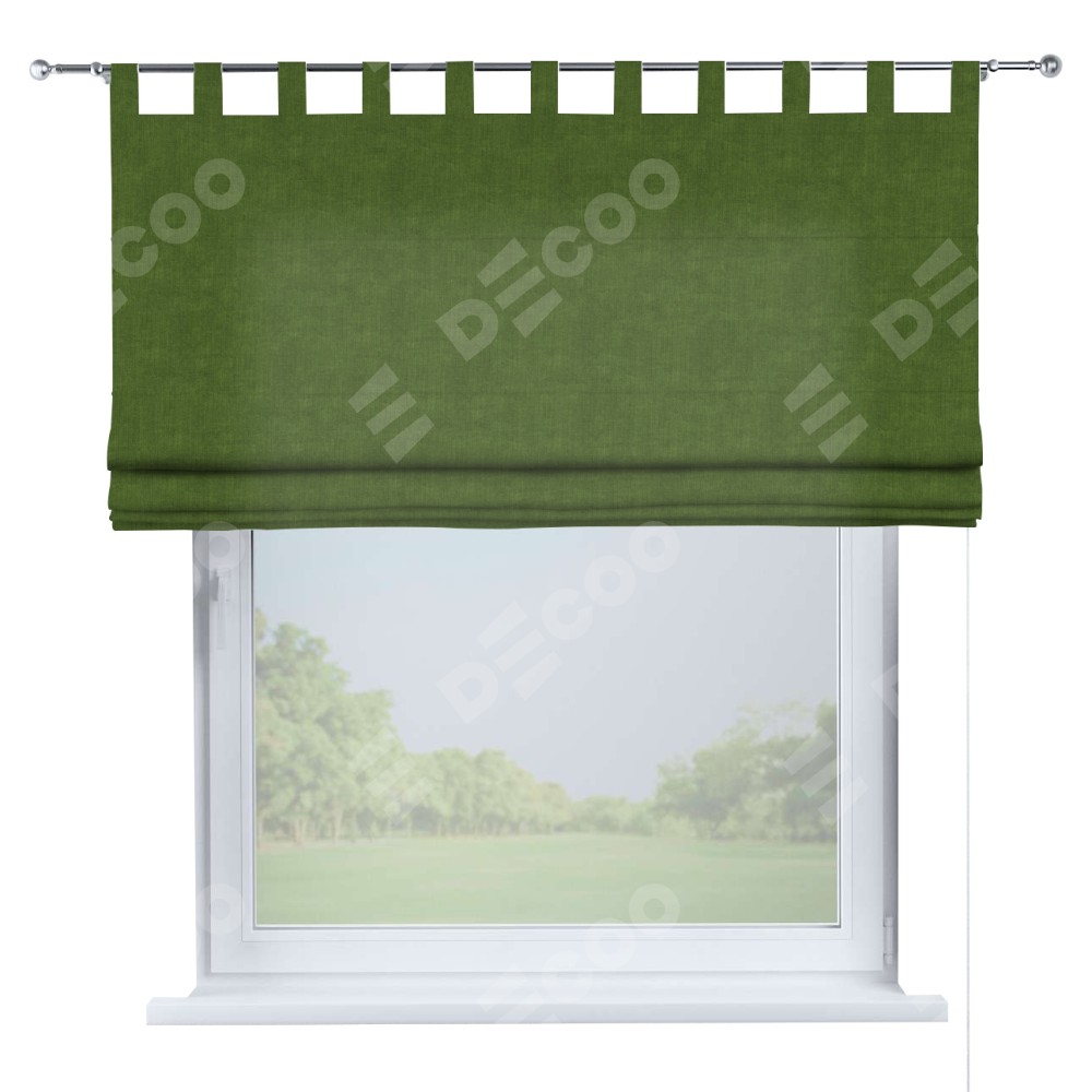 Римская штора производителя «Cortin», используется для проёма, пошита из ткани канвас трава, артикул ткани v-473. Данная модель пошита на петлях, комплектуется на выбор круглым карнизом и подходит для монтажа на стену. Римская штора на петлях имеет простую систему регулировки высоты, отличительным преимуществом данной модели является простой способ монтажа. Достаточно повесить ее на трубу и штора готова!