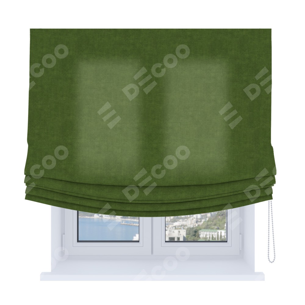 Римская штора Soft производителя «Cortin», используется для проёма, пошита из ткани канвас трава, артикул ткани v-473. Имеет универсальный механизм и подходит для монтажа: на потолок, на стену и в нишу. В отличие от стандартных римских штор, римская штора Soft не имеет горизонтальных вставок и нижнего отвеса. Это позволяет ткани произвольно драпироваться в свободные мягкие складки.