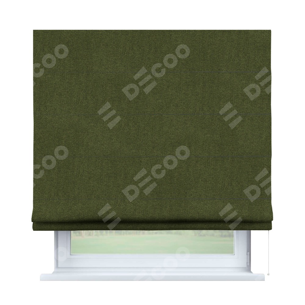 Римская штора производителя «Cortin», используется для проёма, пошита из ткани лён димаут салатовый, артикул ткани 91002. Имеет универсальный механизм и подходит для монтажа: на потолок, на стену и в нишу.