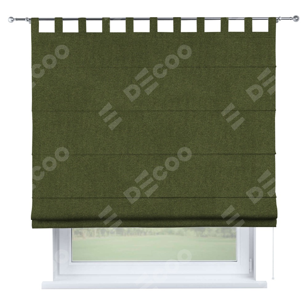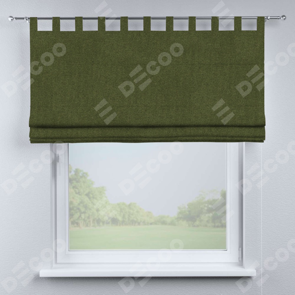 Римская штора производителя «Cortin», используется для проёма, пошита из ткани лён димаут салатовый, артикул ткани 91002. Данная модель пошита на петлях, комплектуется на выбор круглым карнизом и подходит для монтажа на стену. Римская штора на петлях имеет простую систему регулировки высоты, отличительным преимуществом данной модели является простой способ монтажа. Достаточно повесить ее на трубу и штора готова!