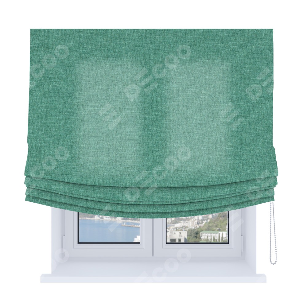 Римская штора «Кортин», лён светло-бирюзовый, Soft с мягкими складками