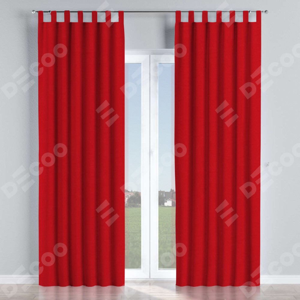 Комплект прямых штор, от производителя «Cortin», пошиты из ткани канвас красный, артикул ткани v-113. Данная модель пошита на петлях, комплектуется на выбор круглым карнизом и подходит для монтажа на стену или потолок. Прямые шторы на петлях шьются по стандарту с коэффициентом 1/2 (на 100 см. ширины проёма 200 см. ширины ткани), отличительным преимуществом данной модели является простой способ монтажа. Достаточно повесить ее на трубу и штора готова!
