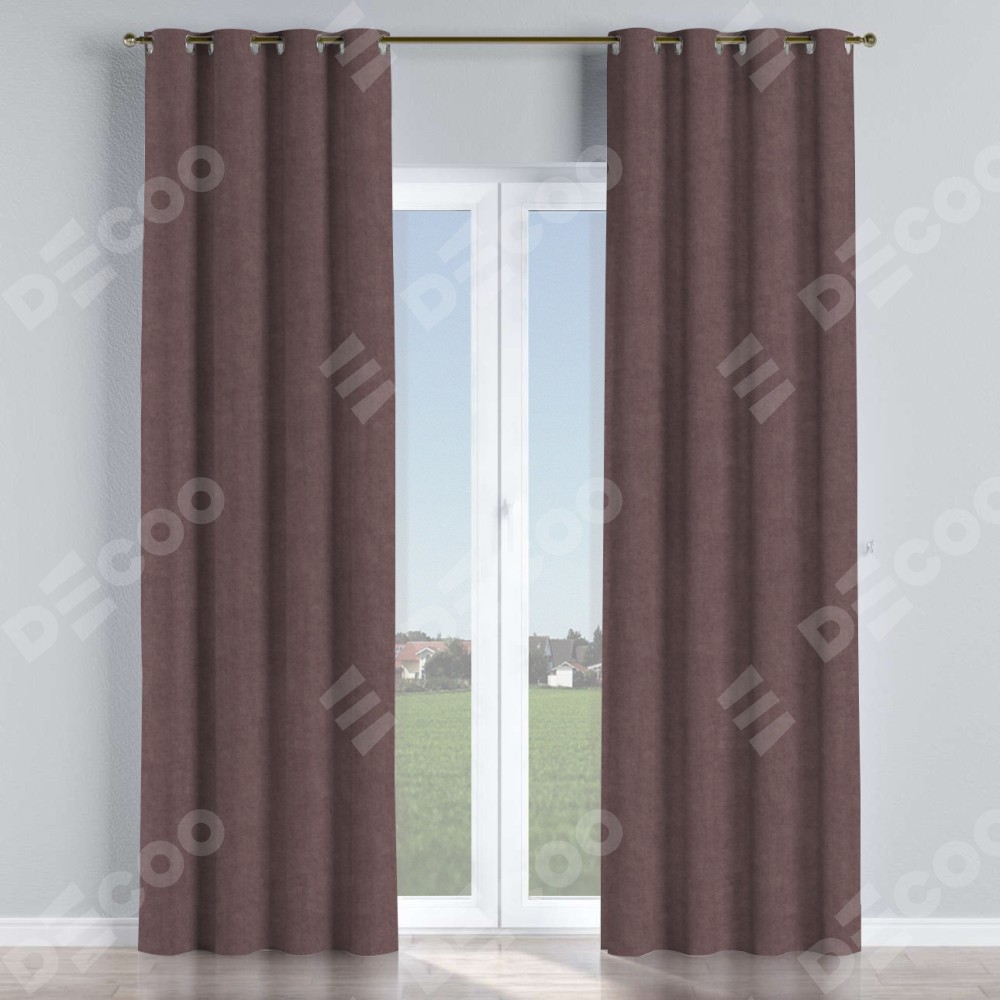 Комплект прямых штор, от производителя «Cortin», пошиты из ткани канвас махагон, артикул ткани v-37. Данная модель пошита на люверсах, комплектуется на выбор круглым карнизом и подходит для монтажа на стену или потолок. Прямые шторы на люверсах шьются по стандарту с коэффициентом 1/2 (на 100 см. ширины проёма 200 см. ширины ткани), отличительным преимуществом данной модели является простой способ монтажа. Достаточно повесить ее на трубу и штора готова!