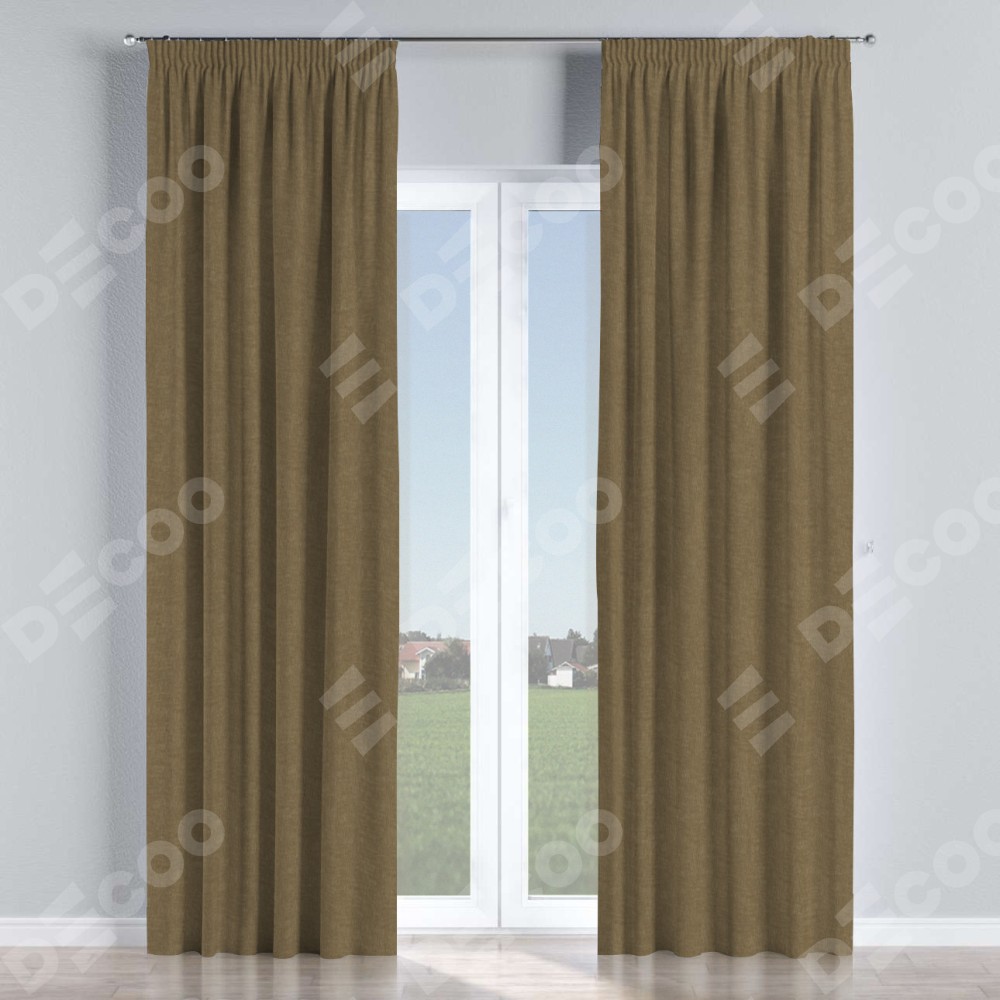 Комплект прямых штор, от производителя «Cortin», пошиты из ткани канвас молочный шоколад, артикул ткани v-08. С изнаночной стороны в верхней части штор пристрачивается шторная лента с декоративными складками «Карандаш». Для создания элегантных складок прямые шторы шьются по стандарту с коэффициентом 1:2 (на 100 см. ширины проёма 200 см. ширины ткани).