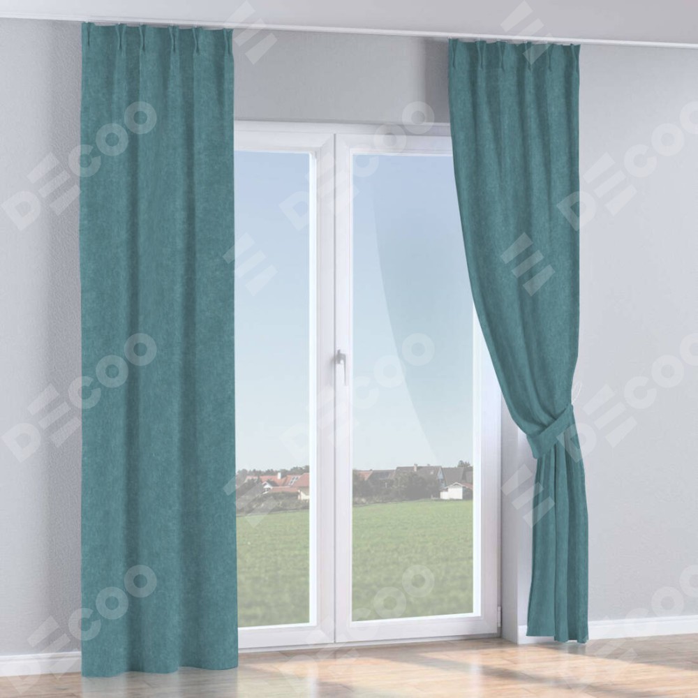 Комплект прямых штор, от производителя «Cortin», пошиты из ткани канвас серо-голубой, артикул ткани v-330. С изнаночной стороны в верхней части штор пристрачивается шторная лента с декоративными складками «Кустик». Для создания элегантных складок прямые шторы шьются по стандарту с коэффициентом 1:2 (на 100 см. ширины проёма 200 см. ширины ткани).