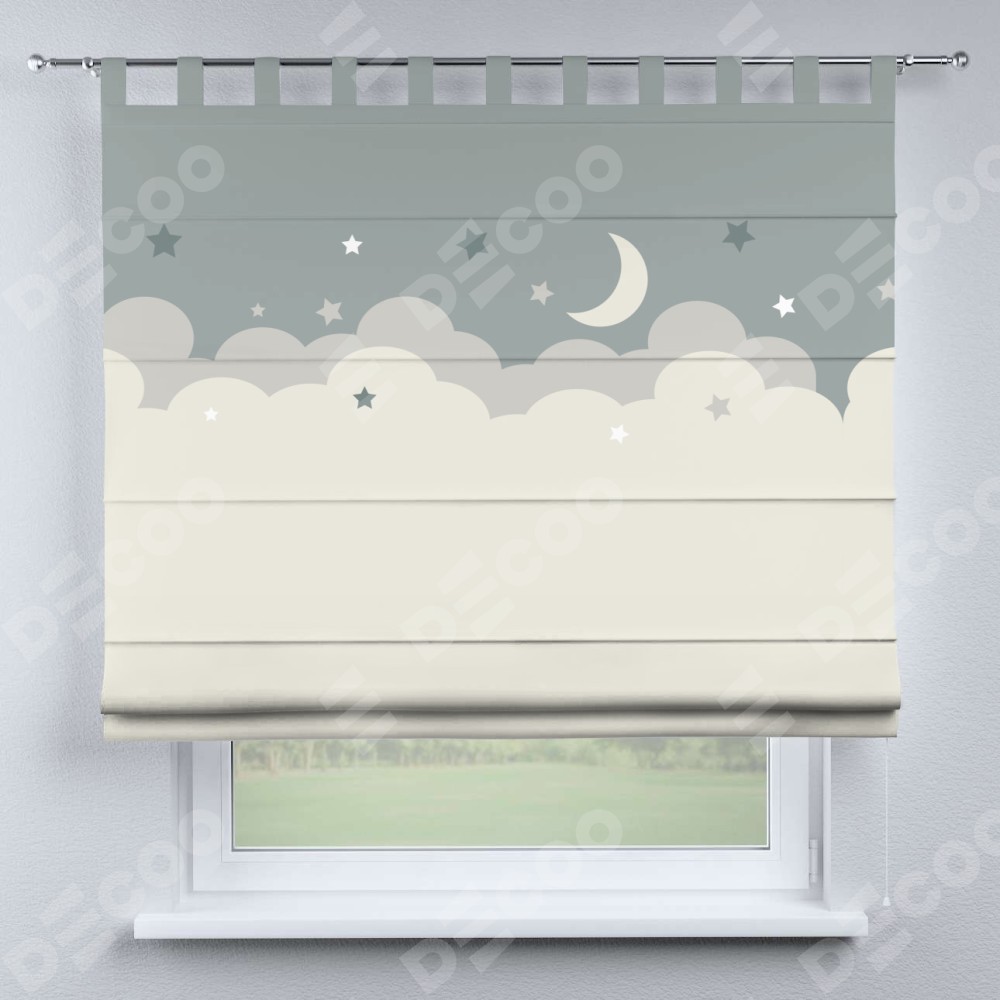 Римская штора производителя «Cortin», используется для проёма, пошита из ткани блэкаут с нанесением сублимационной печати «Ночные облака». Данная модель пошита на петлях, комплектуется на выбор круглым карнизом и подходит для монтажа на стену. Римская штора на петлях имеет простую систему регулировки высоты, отличительным преимуществом данной модели является простой способ монтажа. Достаточно повесить ее на трубу и штора готова!