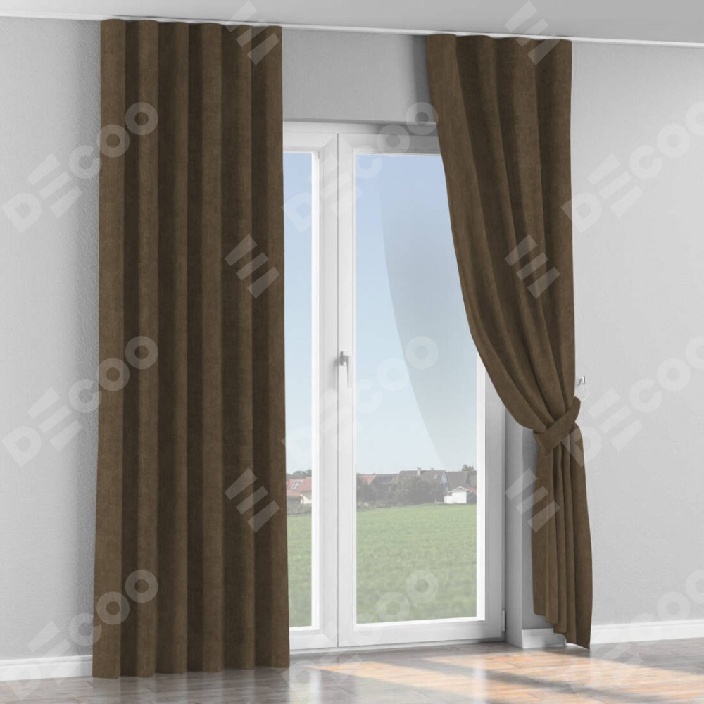 Комплект прямых штор, от производителя «Cortin», пошиты из ткани канвас шоколадный, артикул ткани v-193. С изнаночной стороны в верхней части штор пристрачивается шторная лента с декоративными складками «Волна». Для создания элегантных складок прямые шторы шьются по стандарту с коэффициентом 1:2 (на 100 см. ширины проёма 200 см. ширины ткани).