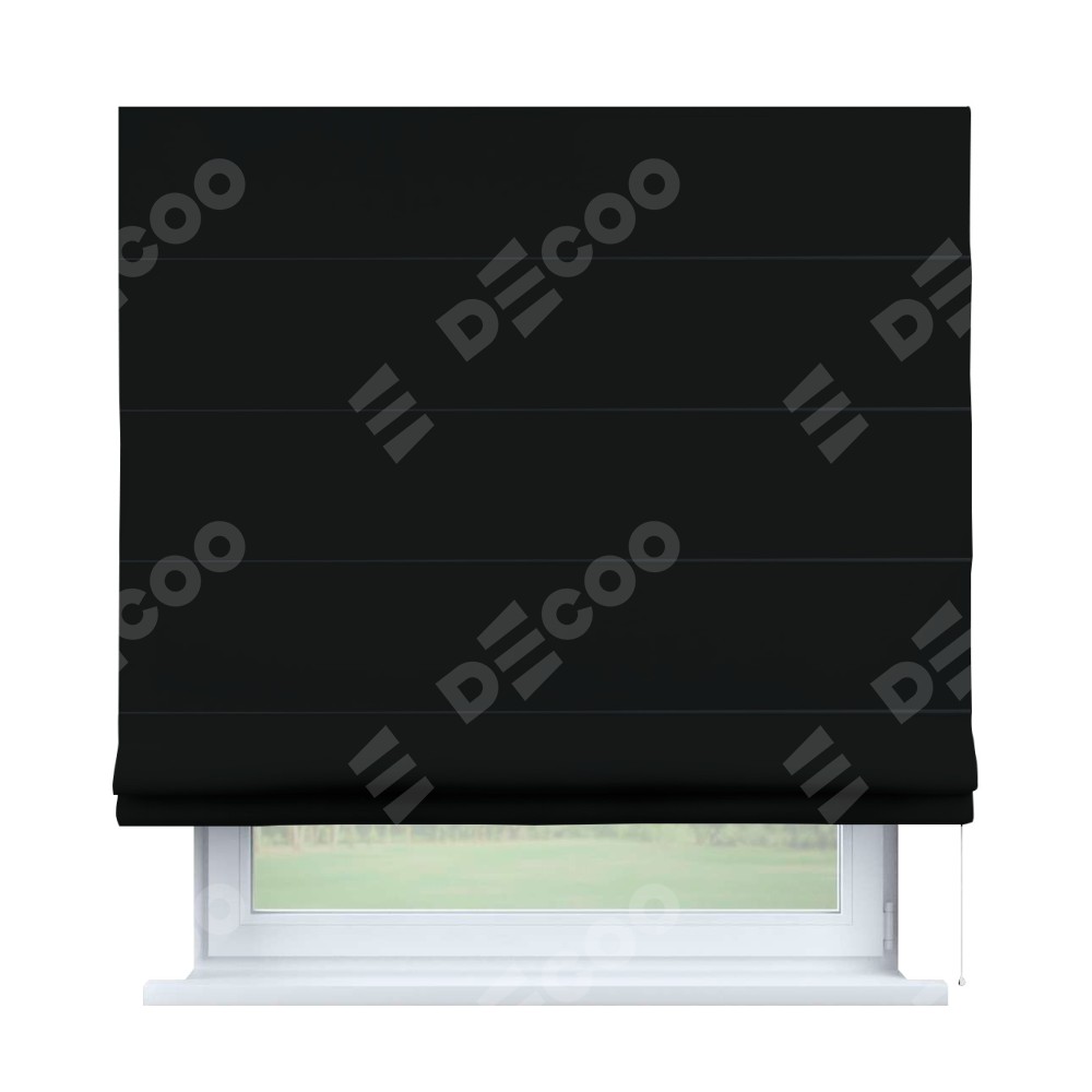 Римская штора производителя «Cortin», используется для проёма, пошита из ткани блэкаут однотонный черный, артикул ткани 91571−2. Имеет универсальный механизм и подходит для монтажа: на потолок, на стену и в нишу.