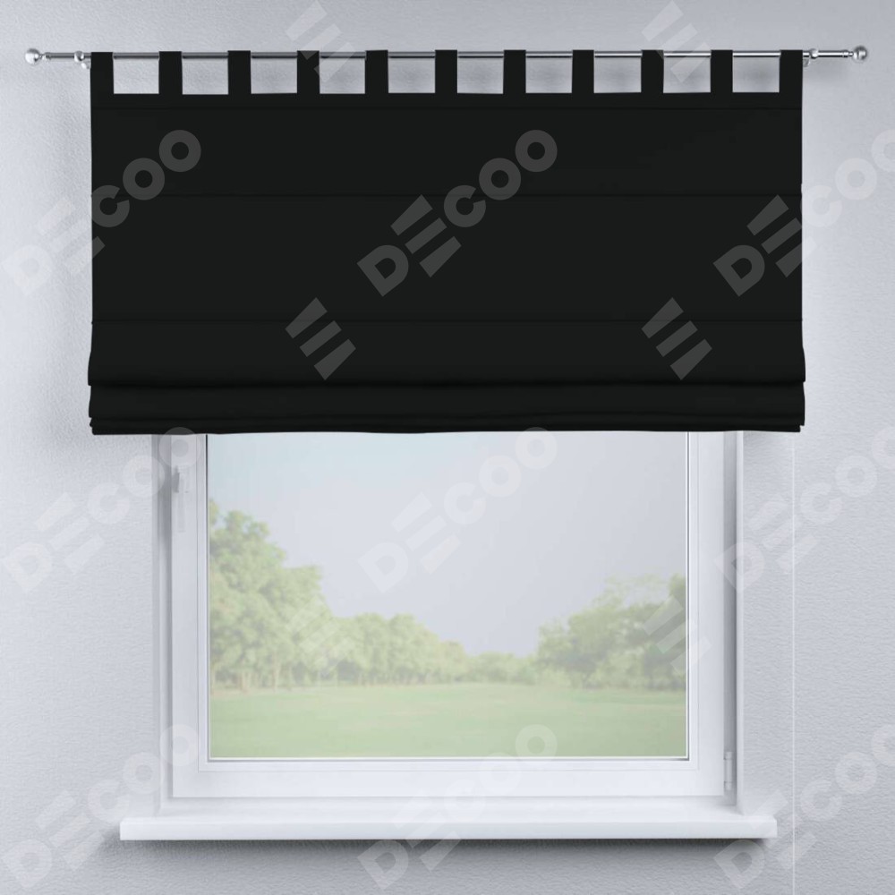 Римская штора производителя «Cortin», используется для проёма, пошита из ткани блэкаут однотонный черный, артикул ткани 91571−2. Данная модель пошита на петлях, комплектуется на выбор круглым карнизом и подходит для монтажа на стену. Римская штора на петлях имеет простую систему регулировки высоты, отличительным преимуществом данной модели является простой способ монтажа. Достаточно повесить ее на трубу и штора готова!