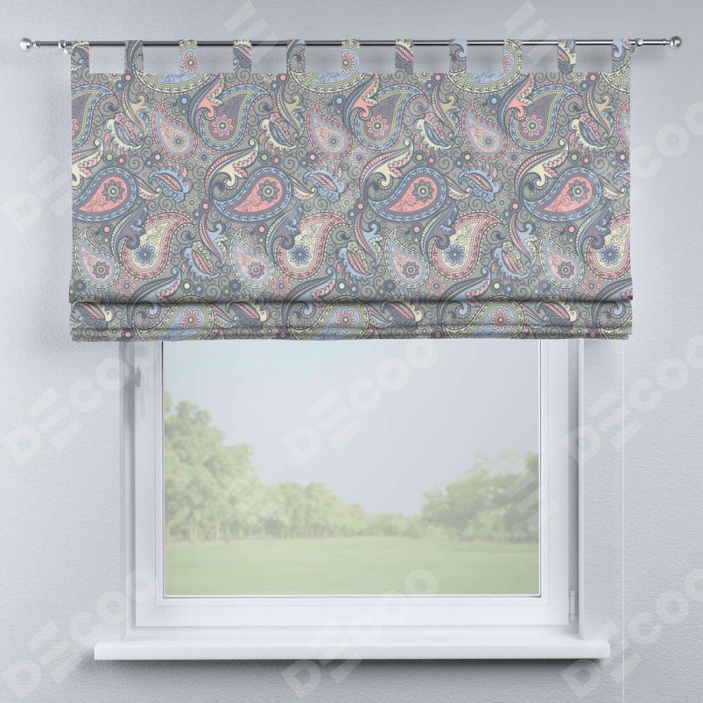 Римская штора производителя «Cortin», используется для проёма, пошита из ткани блэкаут с нанесением сублимационной печати «Цветной пейсли». Данная модель пошита на петлях, комплектуется на выбор круглым карнизом и подходит для монтажа на стену. Римская штора на петлях имеет простую систему регулировки высоты, отличительным преимуществом данной модели является простой способ монтажа. Достаточно повесить ее на трубу и штора готова!