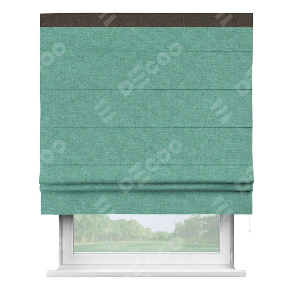 Римская штора «Кортин» с кантом Кинг, для проема, лён светло-бирюзовый