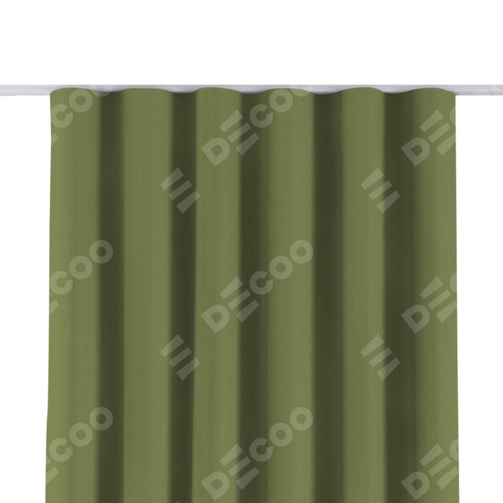 Комплект прямых штор, от производителя «Cortin», пошиты из ткани бархат золотая оливка, артикул ткани 90725. С изнаночной стороны в верхней части штор пристрачивается шторная лента с декоративными складками «Волна». Для создания элегантных складок прямые шторы шьются по стандарту с коэффициентом 1:2 (на 100 см. ширины проёма 200 см. ширины ткани).