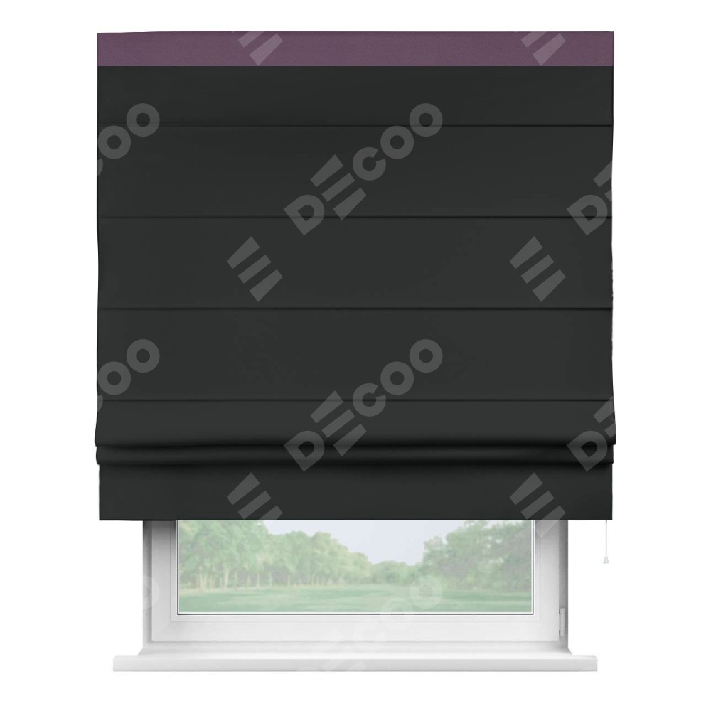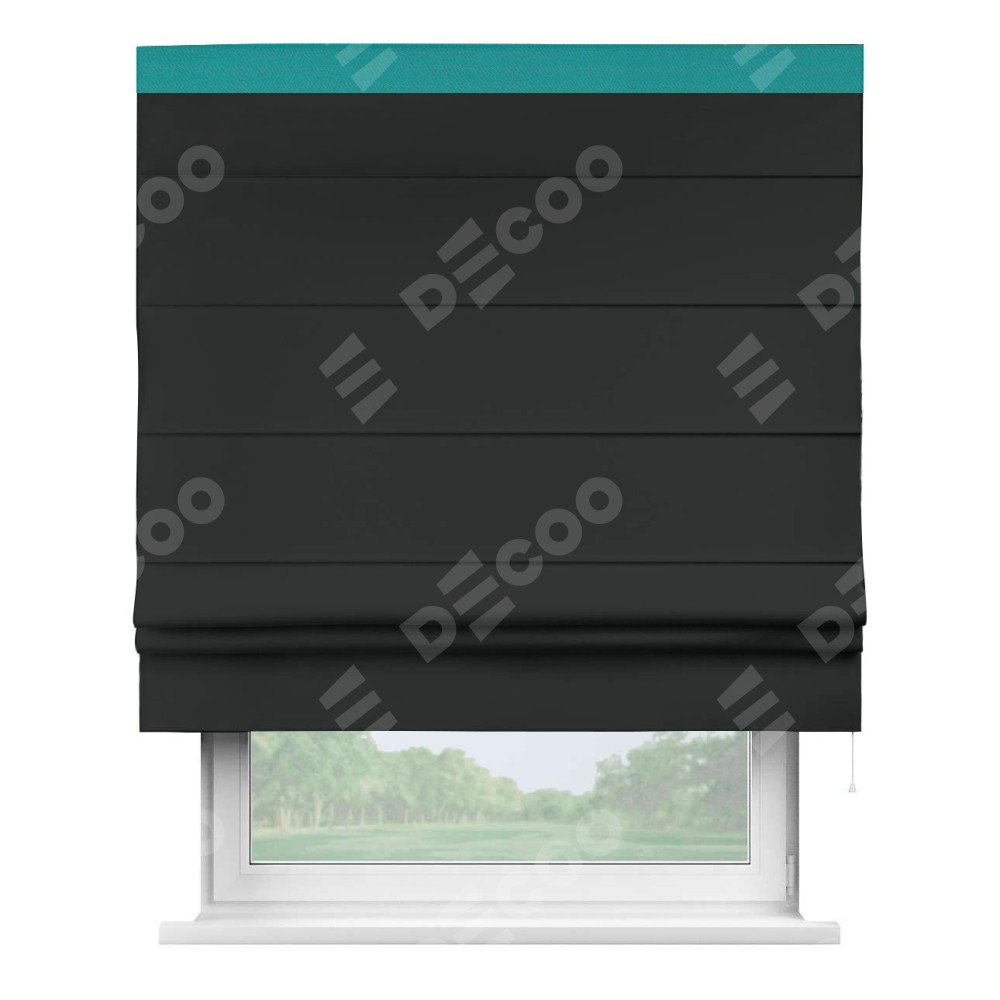 Римская штора «Кортин» для проема, блэкаут однотонный черный с кантом Кинг