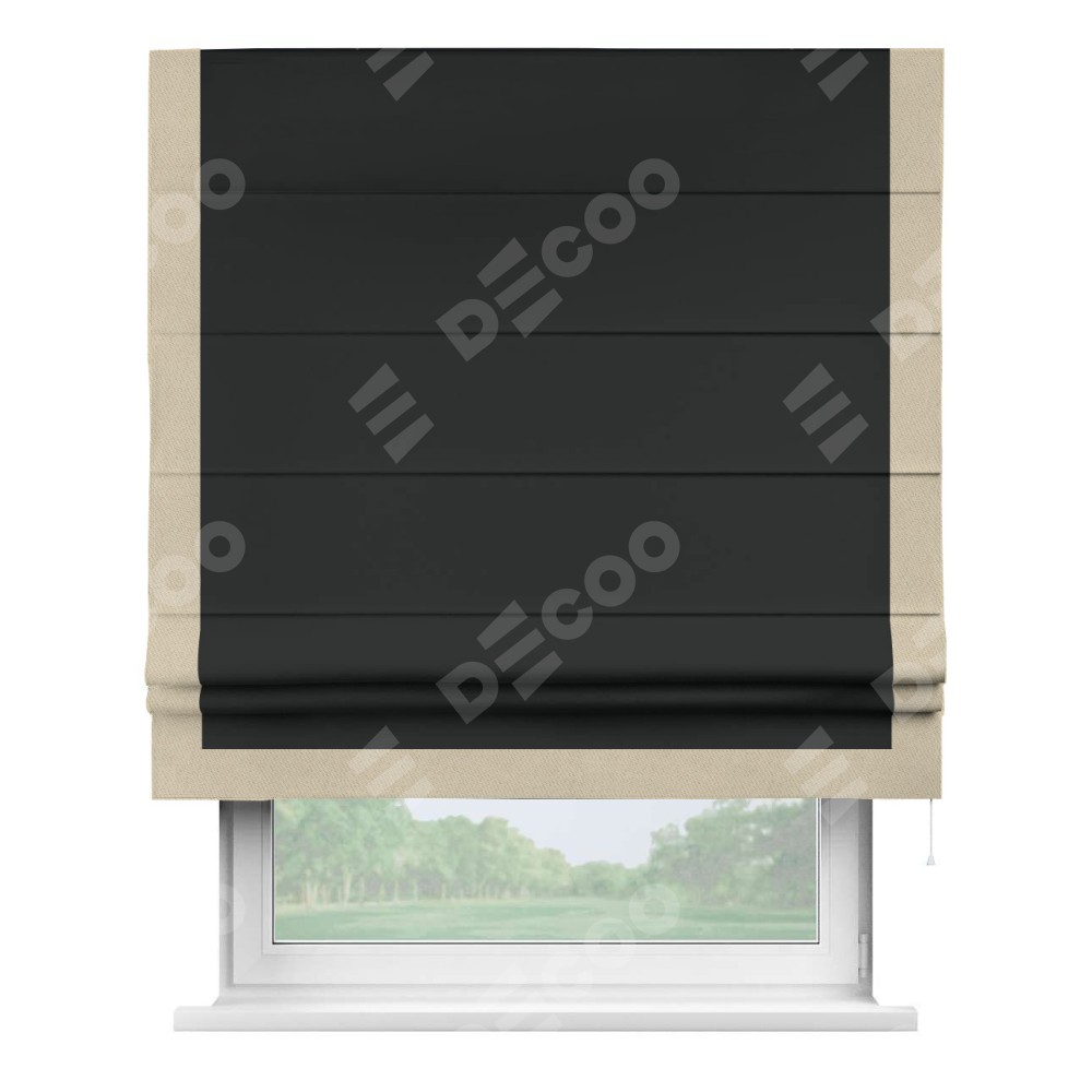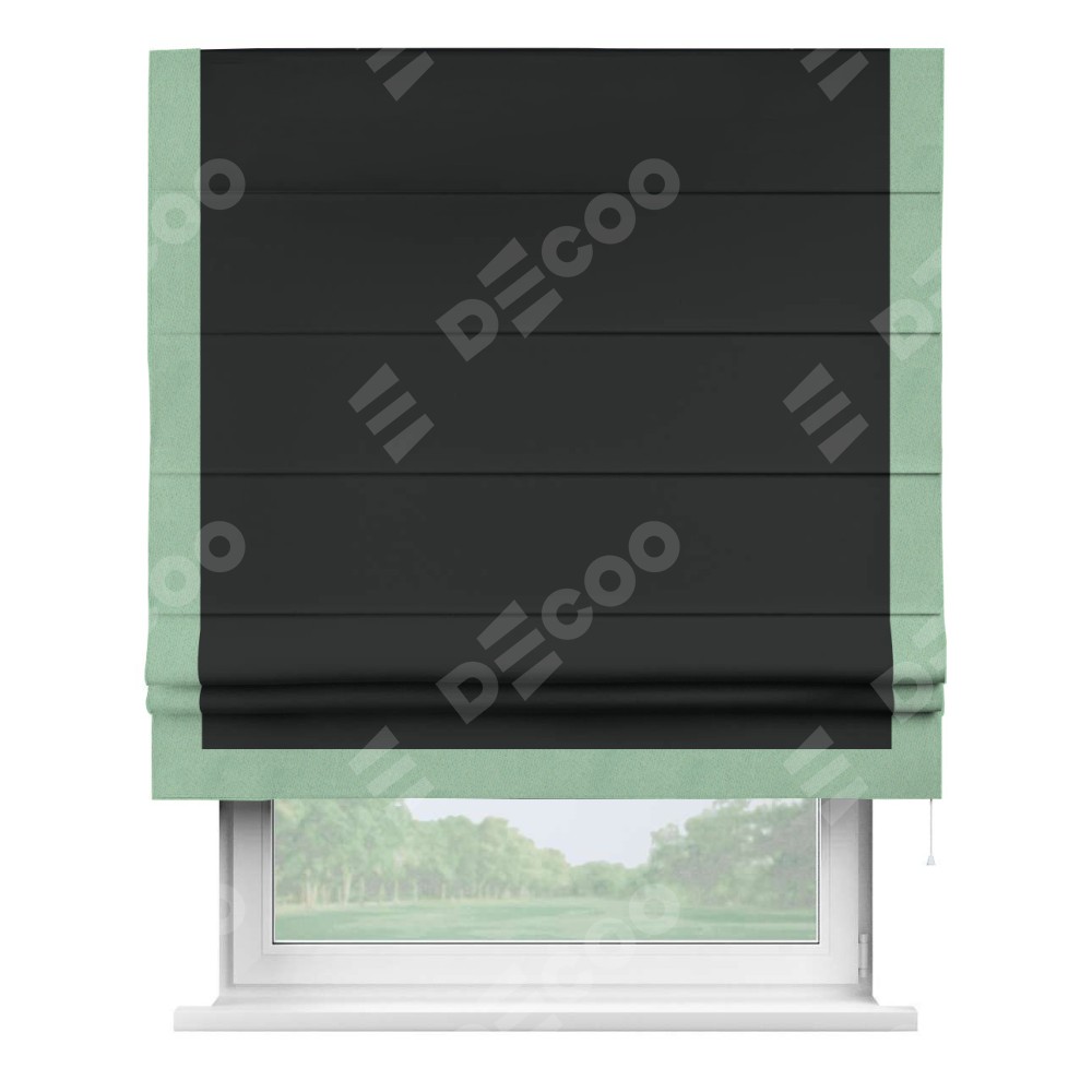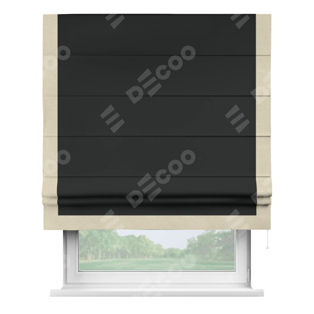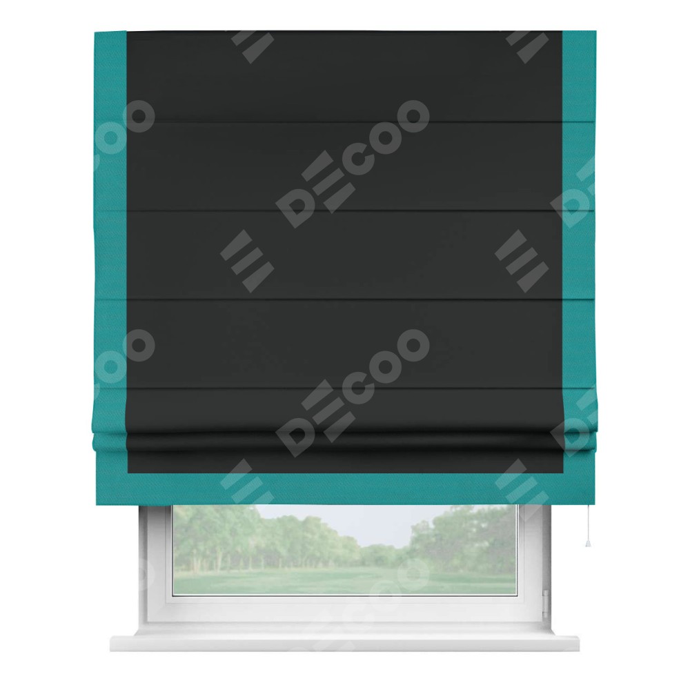 Римская штора производителя «Cortin», используется для проёма, пошита из ткани блэкаут однотонный черный, артикул ткани 91571−2. Отделка шторы кантом «Виктория», ткань для канта используется из блэкаута однотонного разной расцветки на выбор. Имеет универсальный механизм и подходит для монтажа: на потолок, на стену и в нишу.