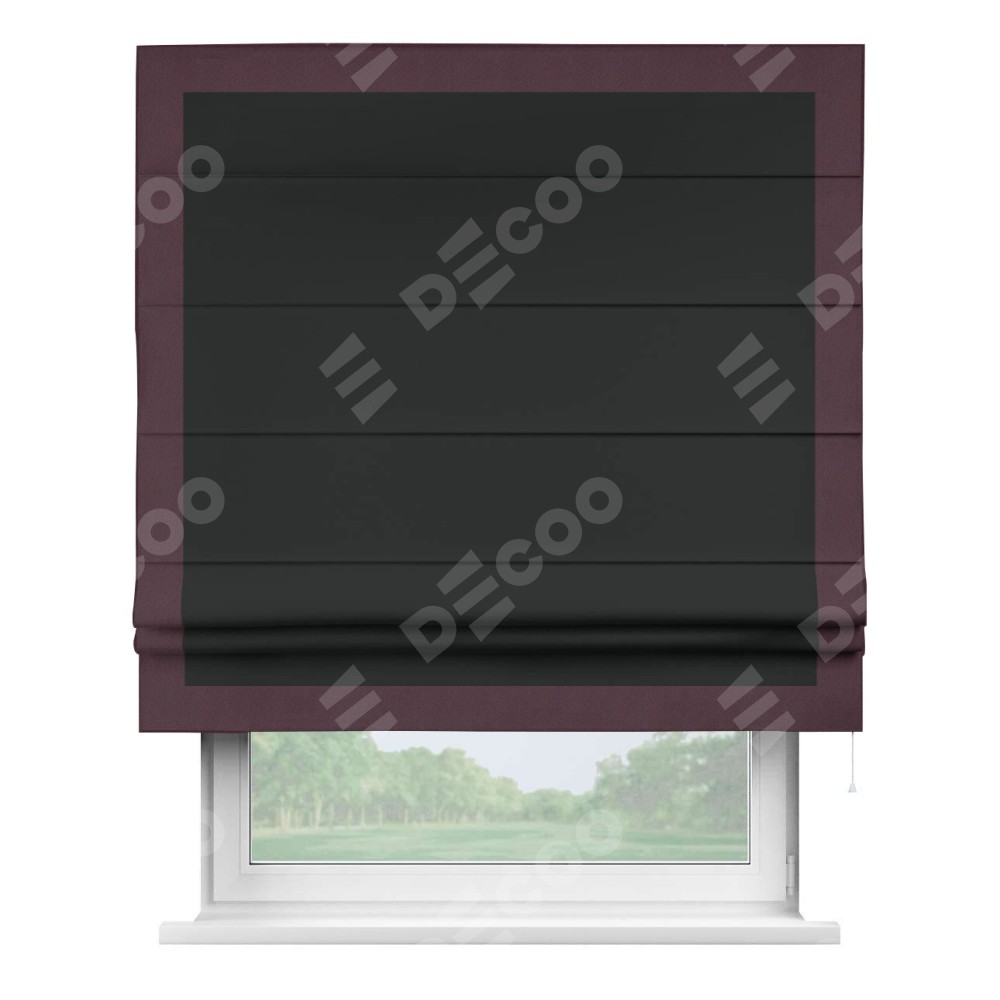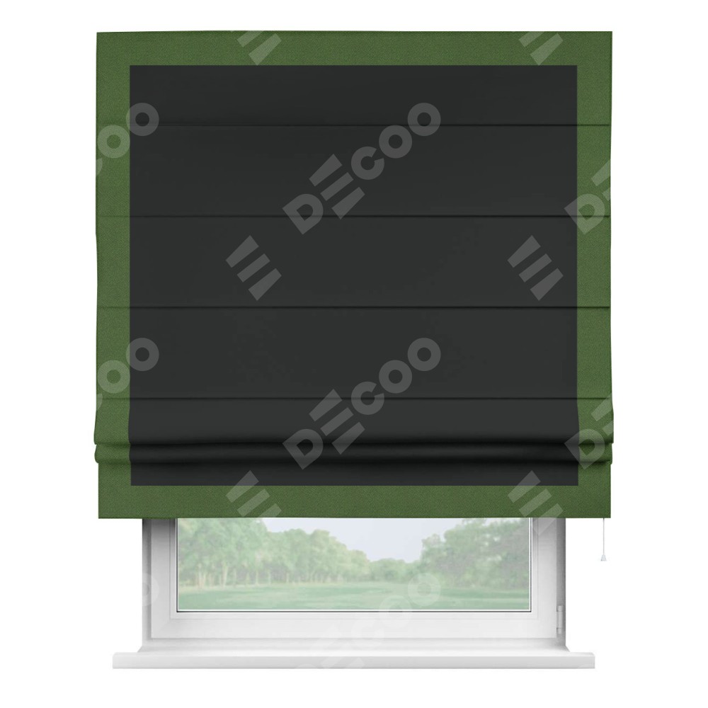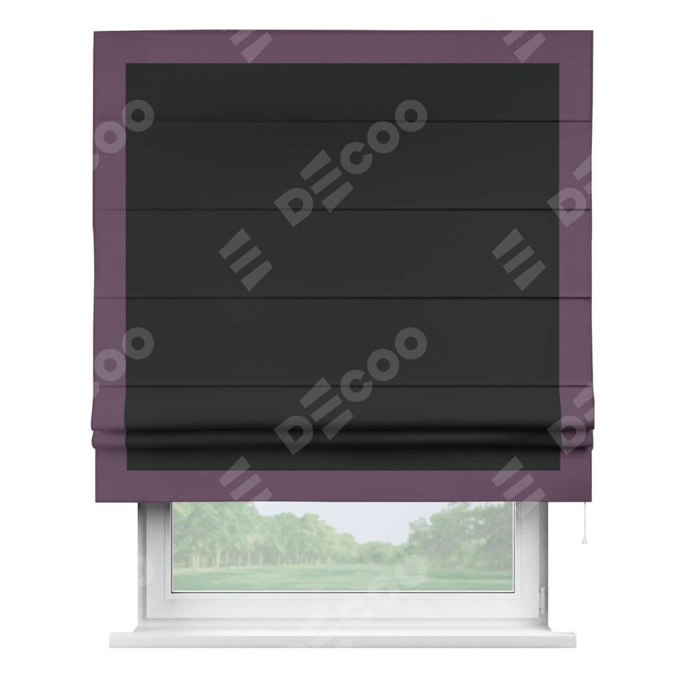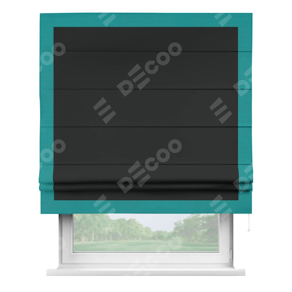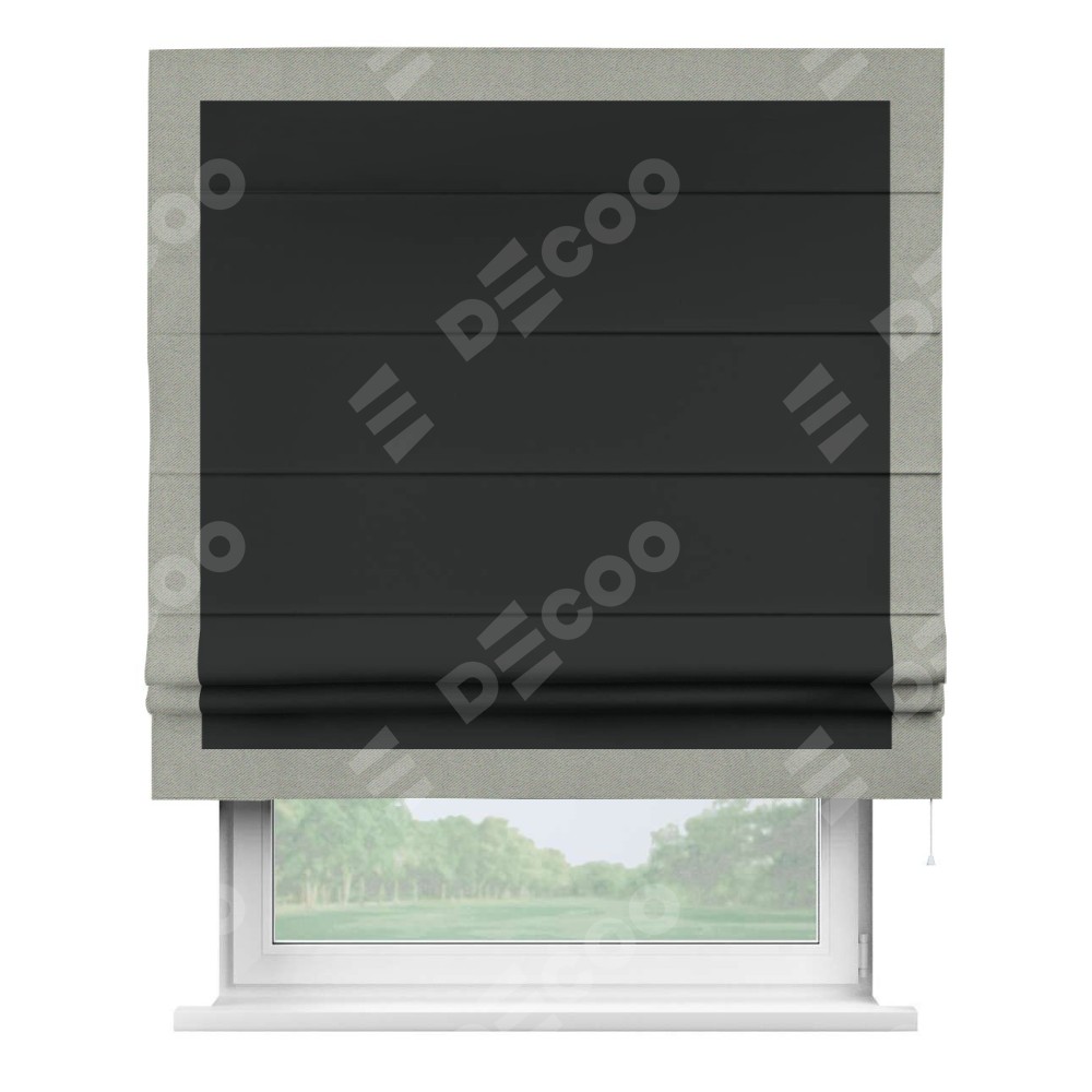 Римская штора «Кортин» для проема, блэкаут однотонный черный с кантом Чесс