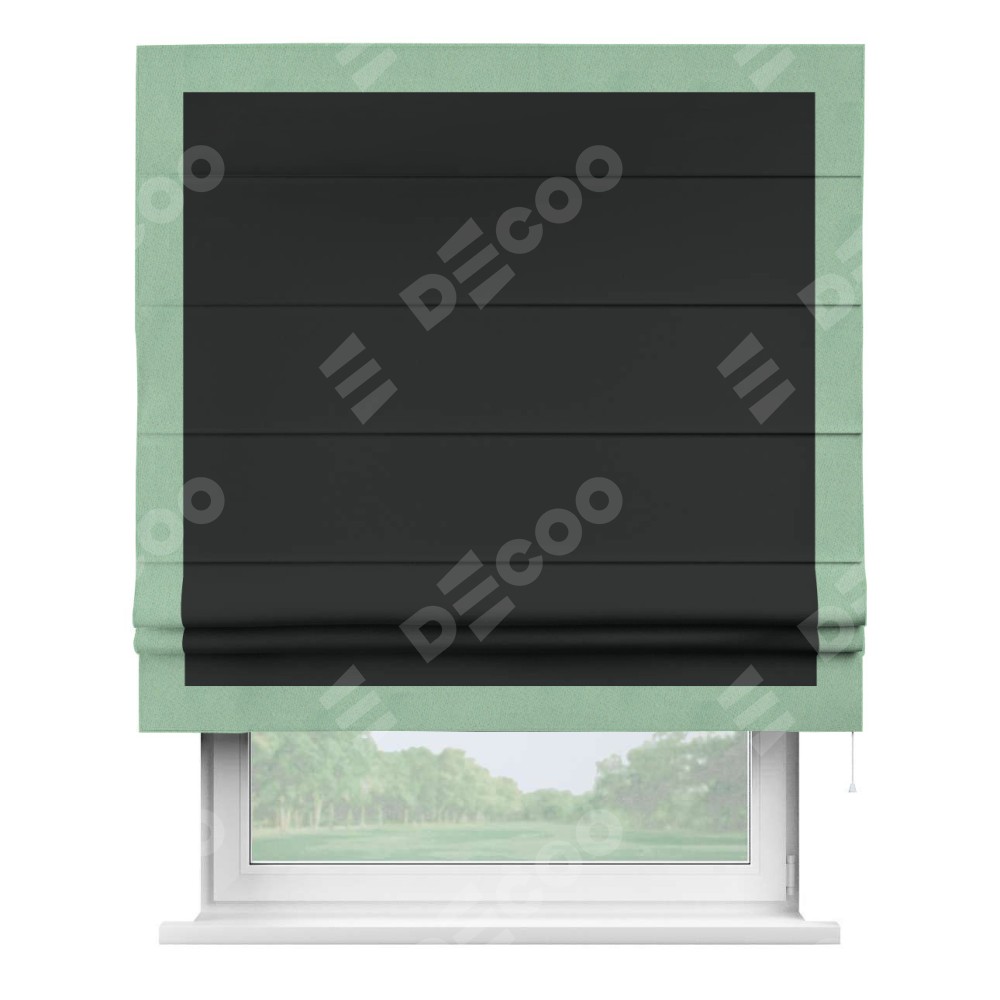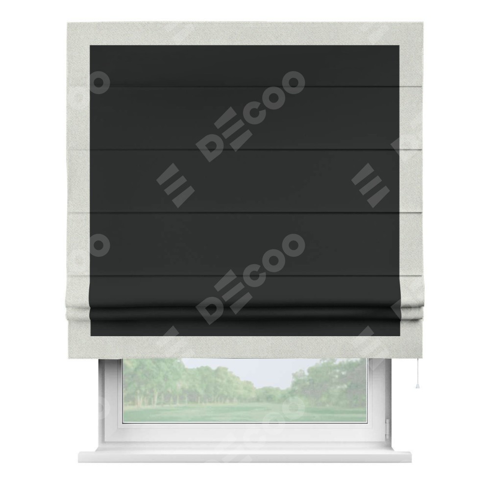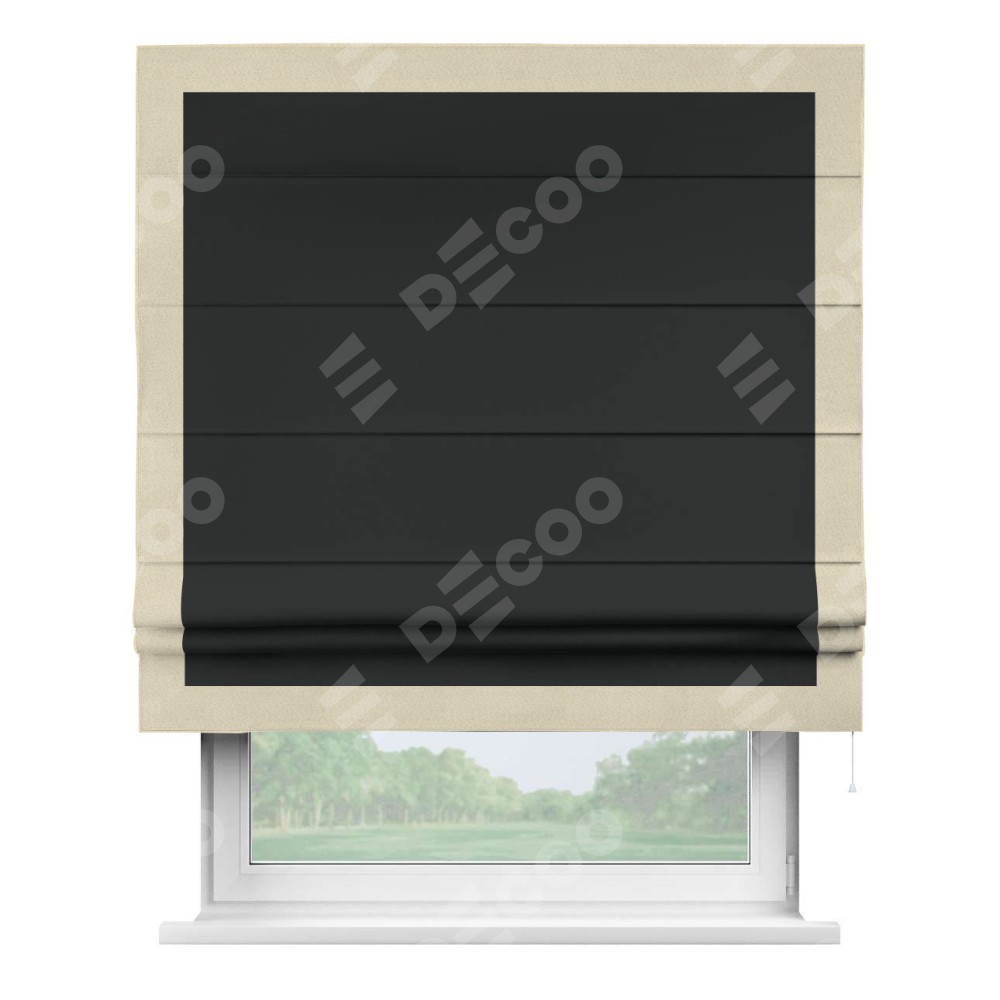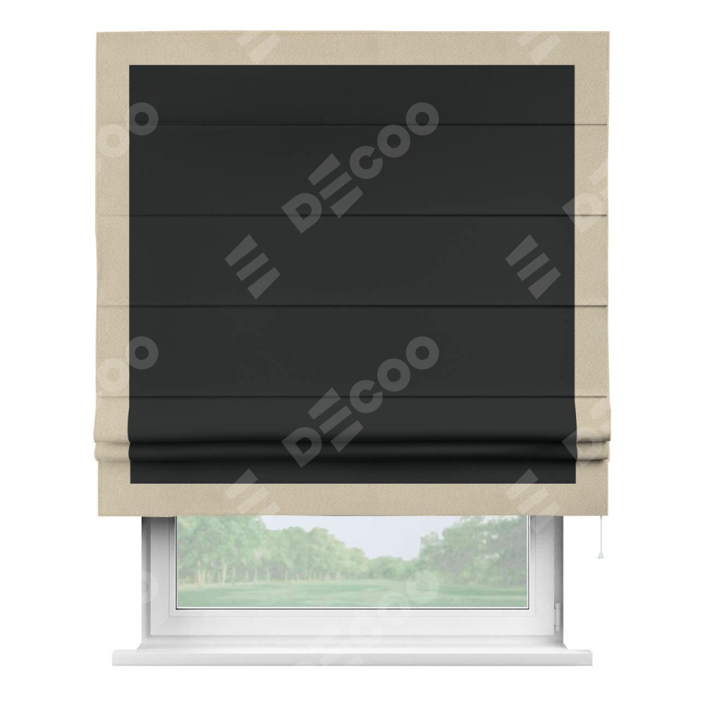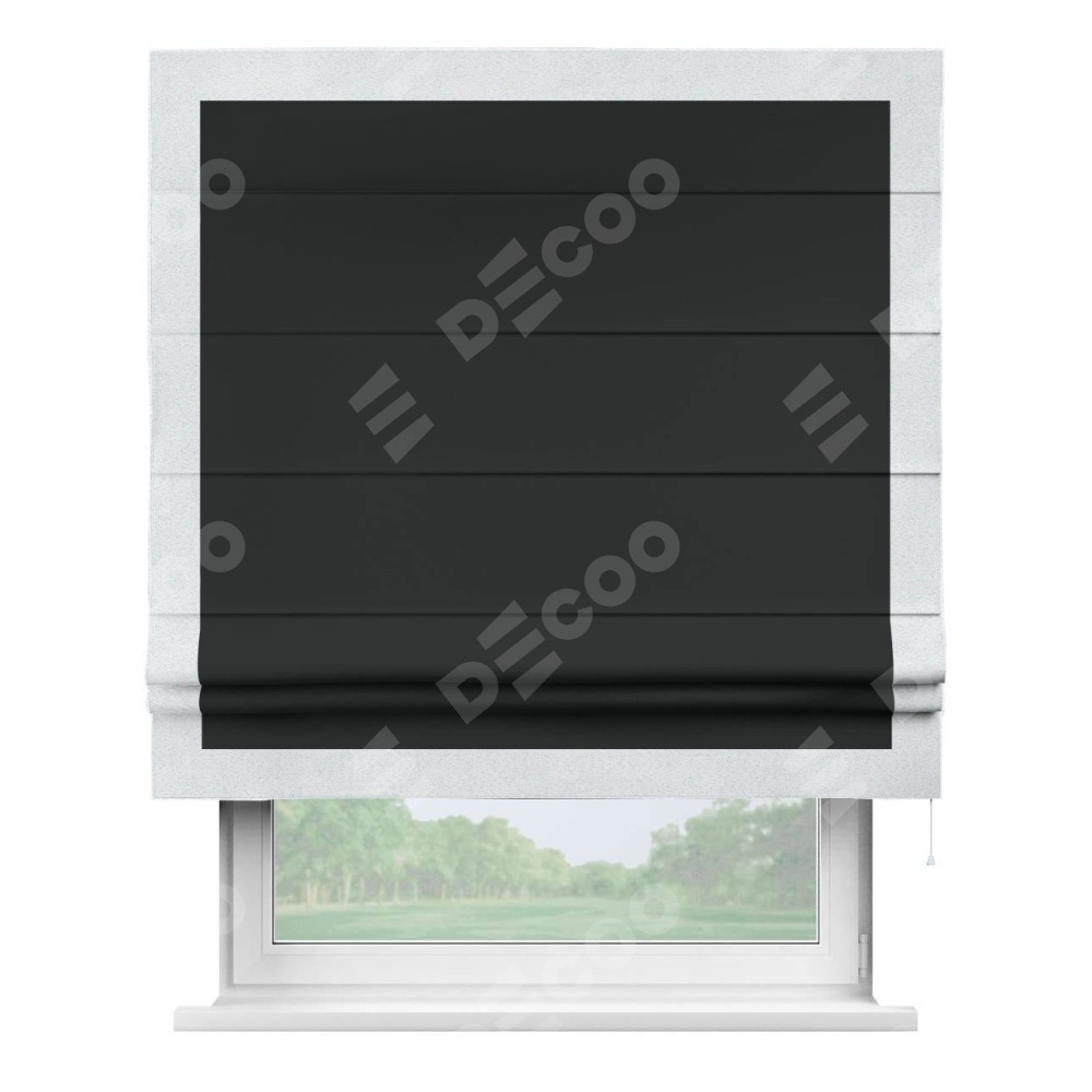 Римская штора «Кортин» для проема, блэкаут однотонный черный с кантом Чесс