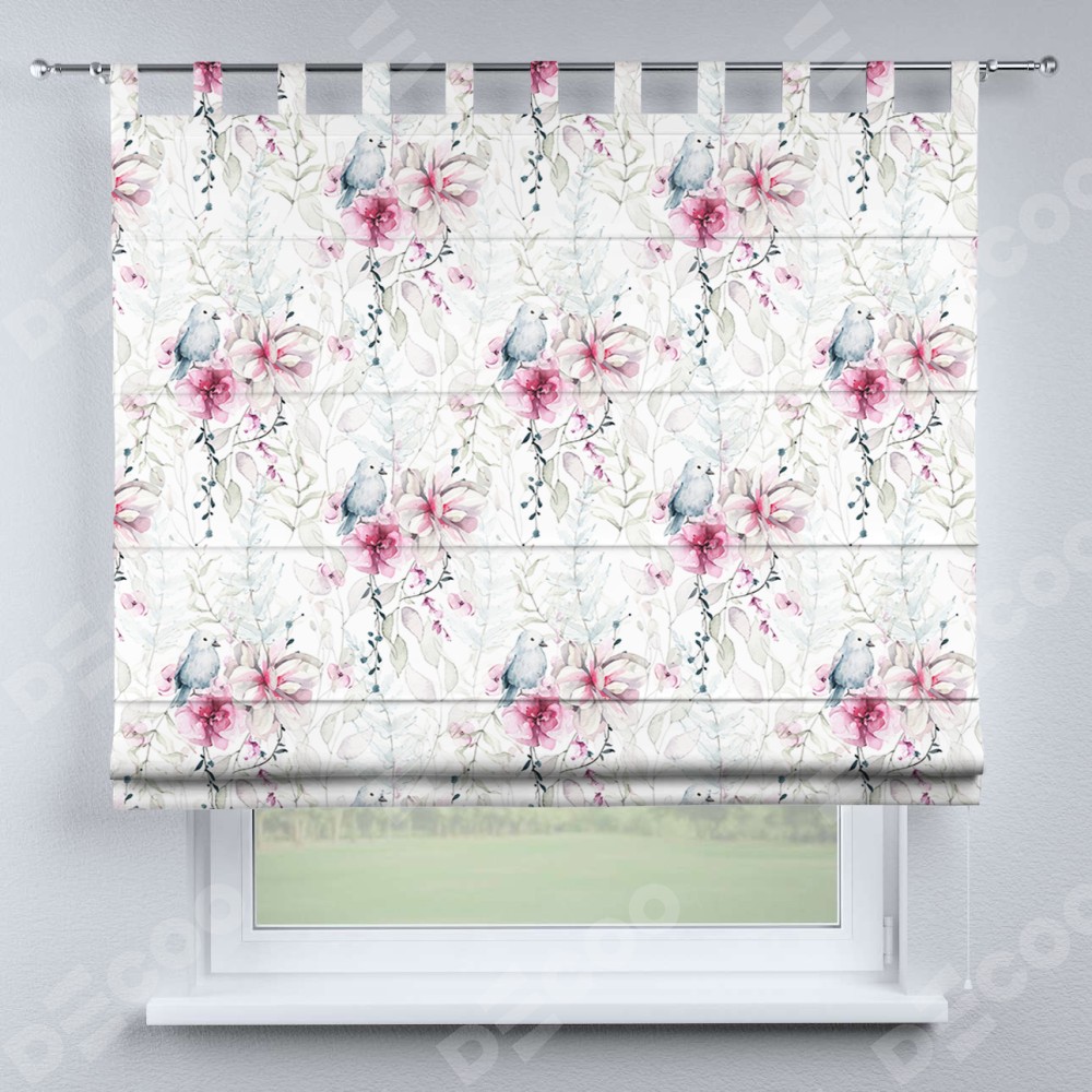 Римская штора производителя «Cortin», используется для проёма, пошита из ткани блэкаут с нанесением сублимационной печати «Мелодия цветов». Данная модель пошита на петлях, комплектуется на выбор круглым карнизом и подходит для монтажа на стену. Римская штора на петлях имеет простую систему регулировки высоты, отличительным преимуществом данной модели является простой способ монтажа. Достаточно повесить ее на трубу и штора готова!