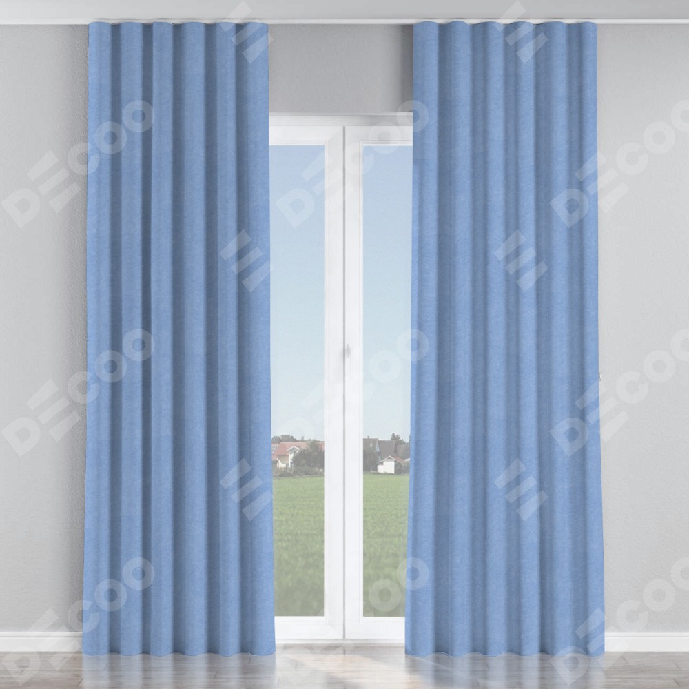 Комплект прямых штор, от производителя «Cortin», пошиты из ткани вельвет васильковый, артикул ткани 33799. С изнаночной стороны в верхней части штор пристрачивается шторная лента с декоративными складками «Волна». Для создания элегантных складок прямые шторы шьются по стандарту с коэффициентом 1:2 (на 100 см. ширины проёма 200 см. ширины ткани).