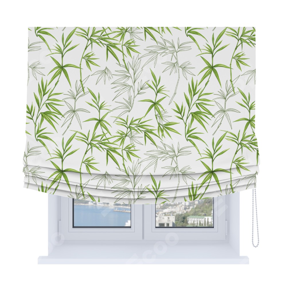 Римская штора Soft производителя «Cortin», используется для проёма, пошита из ткани блэкаут с нанесением сублимационной печати «Зелёный бамбук». Имеет универсальный механизм и подходит для монтажа: на потолок, на стену и в нишу. В отличие от стандартных римских штор, римская штора Soft не имеет горизонтальных вставок и нижнего отвеса. Это позволяет ткани произвольно драпироваться в свободные мягкие складки.