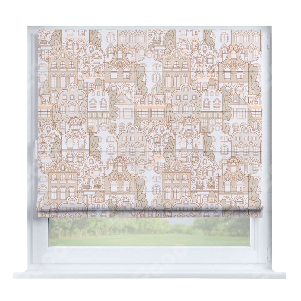 Римская штора производителя «Cortin», устанавливается на створку окна, пошита из ткани блэкаут с нанесением сублимационной печати «Милый городок». Штора шьётся по индивидуальным размерам, для данного типа римской шторы возможная ширина от 35 до 150 см., высота до 250 см.