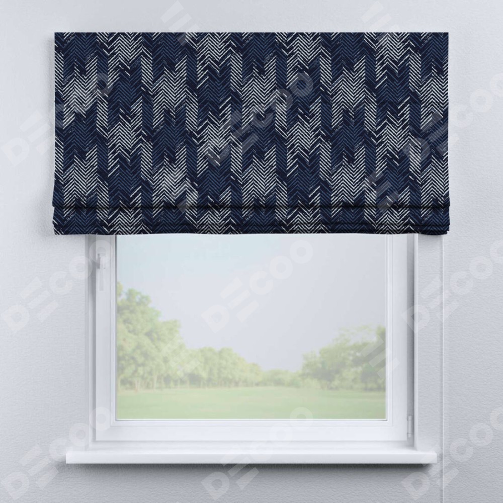 Классическая римская штора производителя «Cortin», пошита из ткани блэкаут с нанесением сублимационной печати «Пёстрый зигзаг». Имеет универсальный механизм и подходит для монтажа: на потолок, на стену и в нишу.