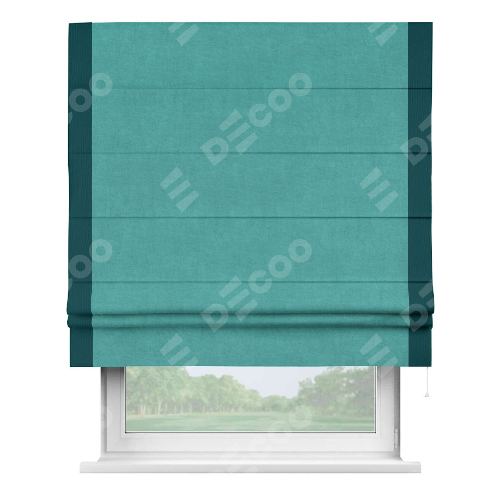 Римская штора «Кортин» для проема, канвас бирюзовый, с кантом Стрим Дуо