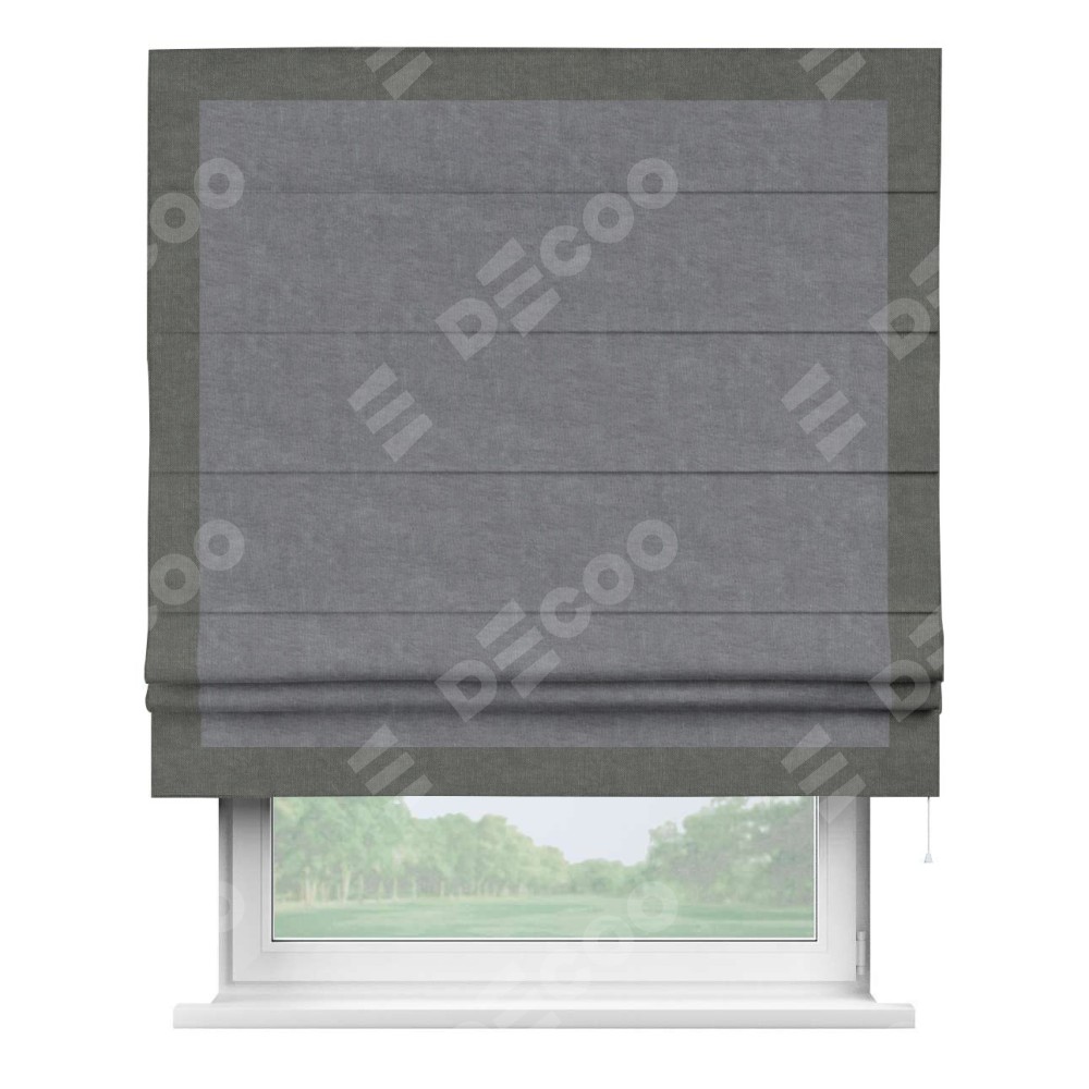 Римская штора «Кортин» для проема, канвас стальной, с кантом Чесс