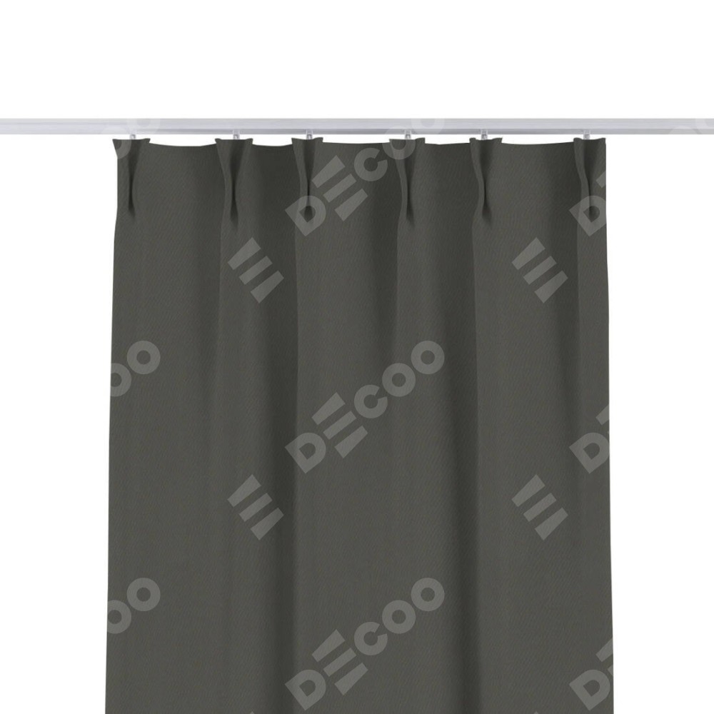 Комплект прямых штор, от производителя «Cortin», пошиты из ткани блэкаут однотонный тёмно-серый, артикул ткани 91570. С изнаночной стороны в верхней части штор пристрачивается шторная лента с декоративными складками «Кустик». Для создания элегантных складок прямые шторы шьются по стандарту с коэффициентом 1:2 (на 100 см. ширины проёма 200 см. ширины ткани).